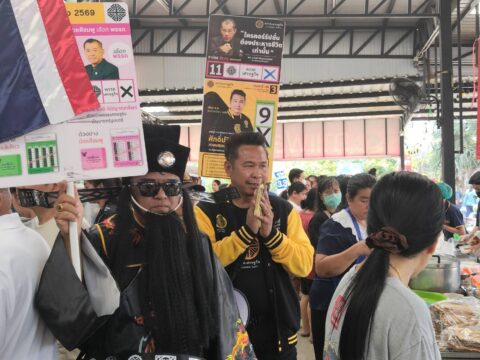 ผู้สมัคร ส.ส.ปทุมธานี เขต 3 พรรคเศรษฐกิจ เบอร์ 9 นำทีมผู้ช่วยหาเสียง แต่งชุด “เปาปุ้นจิ้น” และ สไบไทย ลงพื้นที่หาเสียงโค้งสุดท้าย ที่ ตลาดพี่ญาคนรุม ปากซอย 13/3 ต.คลองสาม อ.คลองหลวง จ.ปทุมธานี