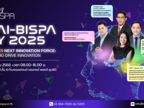 ขอเชิญทุกท่านร่วมเป็นส่วนหนึ่งภายในงานสุดยิ่งใหญ่แห่งปีกับงาน Thai-BISPA Day 2025 ปีนี้จัดขึ้นภายใต้แนวคิด “THAILAND’S NEXT INNOVATION FORCE: People Who Drive Innovation” งานรวมพลังเครือข่ายผู้ขับเคลื่อนนวัตกรรมจากทั่วประเทศที่มุ่งเน้นยกระดับศักยภาพ “คน” ในฐานะพลังสำคัญของระบบนิเวศนวัตกรรมไทย