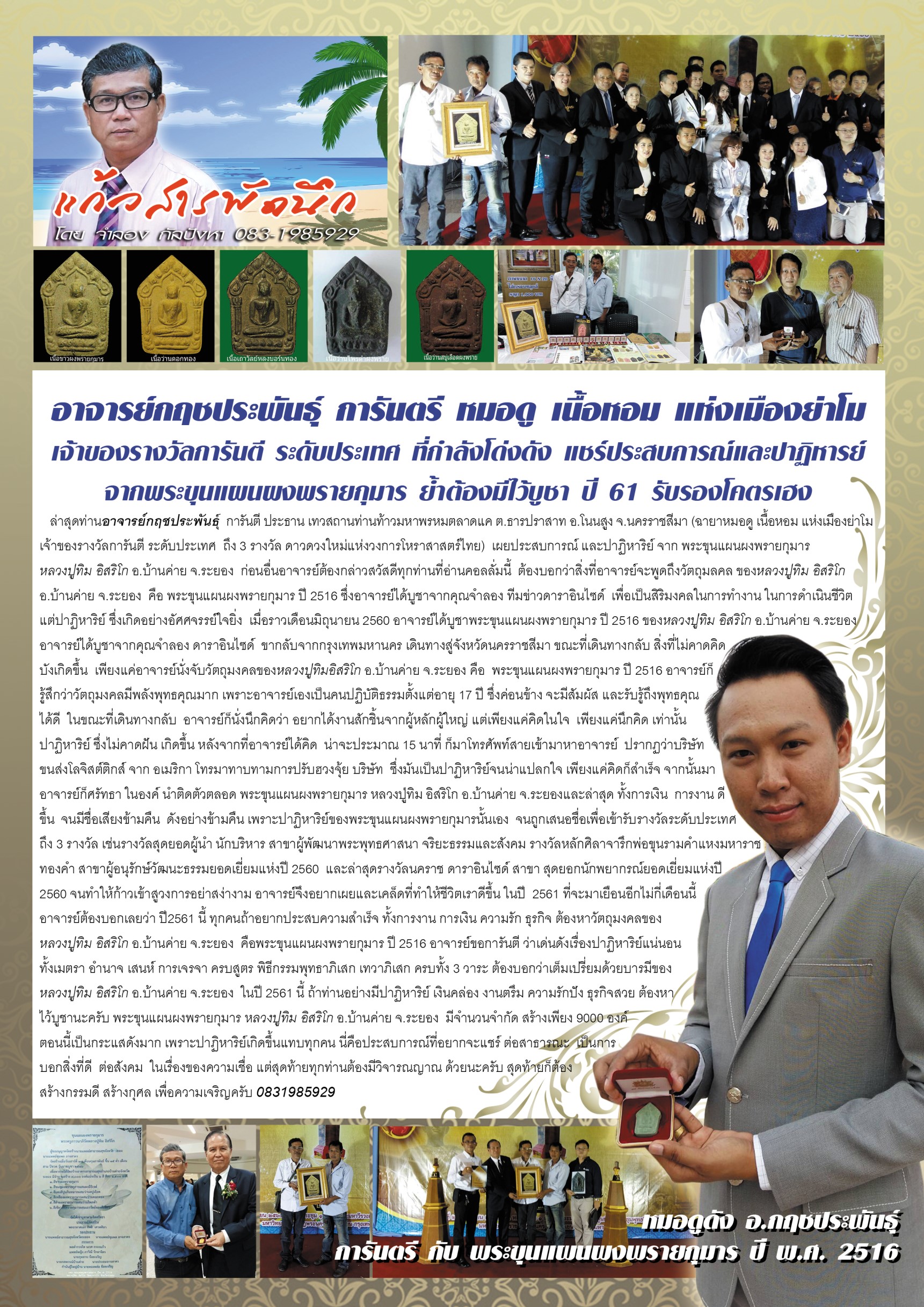 Posted in ข่าวเด่นด้านบน, พระ พระขุนแผนผงพรากุมาร ปี พ.ศ. 2516 หลวงปู่ทิม อิสริโก วัดละหารไร่ อ.บ้านค่าย จ.ระยอง โดย หนู ก.ม. เซียนพระสายพระขุนแผน ปี16 ดารา วาไรตี้ พฤษภาคม 21, 2561 Author: ดารา วาไรตี้ Related Articles #BEAMS #BEAUTY BIZ MASTERY SUMMIT 2024 งานสัมมนา “สร้างแบรนด์ก้าวทันกฎหมาย สู่ความสำเร็จธุรกิจความงาม” “ป๊อปปี้ รัชพงศ์” เสริมทัพความแซ่บ พิธีกรน้องใหม่ “บางกอกกระซิบ” ( Bangkok Gssip )เตรียมฉลองเข้าสู่ปีที่ 20 วช.โดยศูนย์รวมผู้เชี่ยวชาญเทคโนโลยีหลังการเก็บเกี่ยวและแปรรูปผลไม้ ร่วมกับสถานความเป็นเลิศด้านเทคโนโลยีหลังการเก็บเกี่ยว มหาวิทยาลัยนเรศวร จัดอบรมการผลิตทุเรียนหมอนทองเชิงพาณิชย์ในพื้นที่ภาคเหนือตอนล่าง ดีต่อใจ “มนต์รักหนองผักกะแยง” กระแสแรง! ชวนคิดฮอดบ้าน ดันยอดวิวสูงในโลกออนไลน์