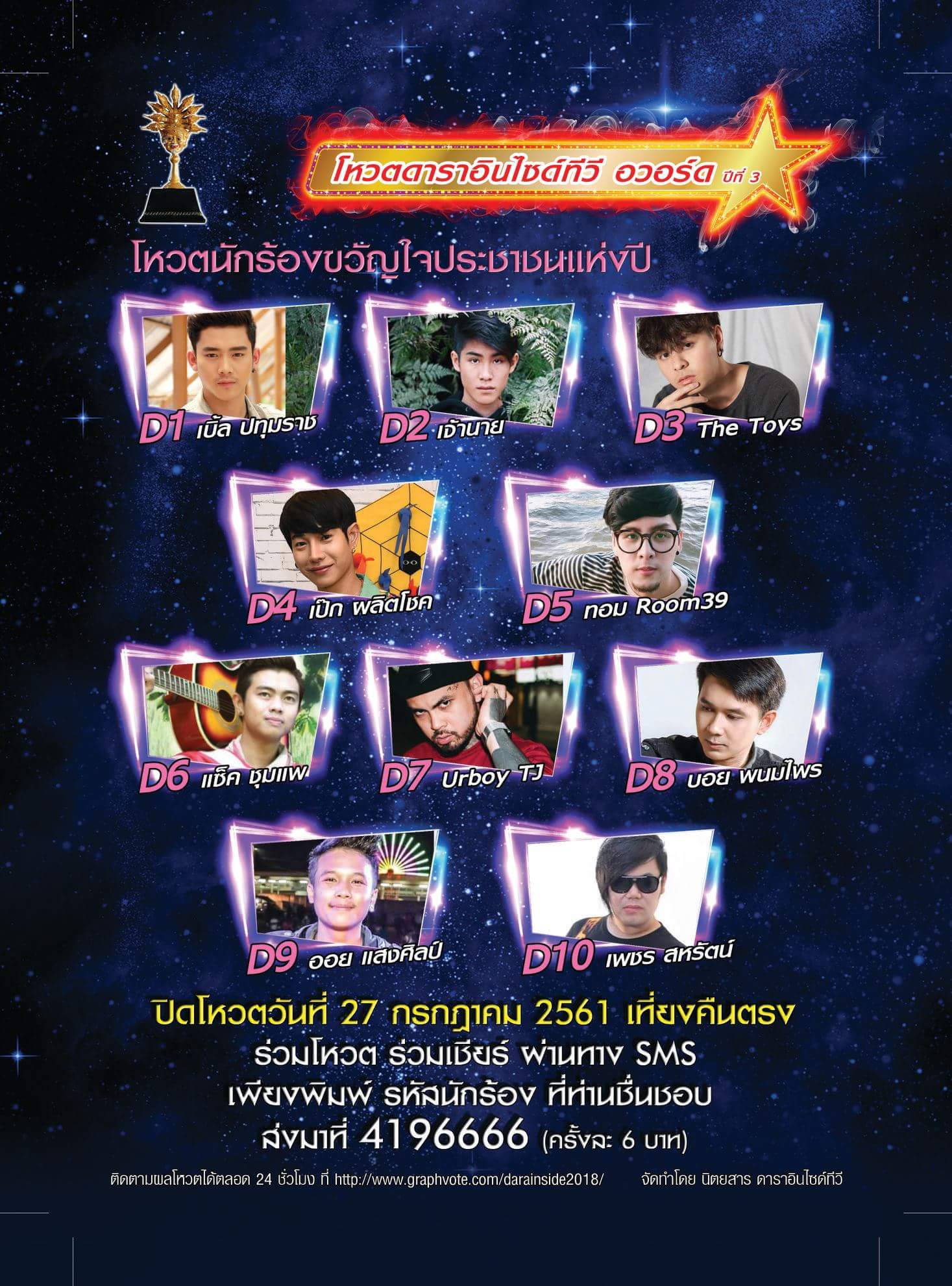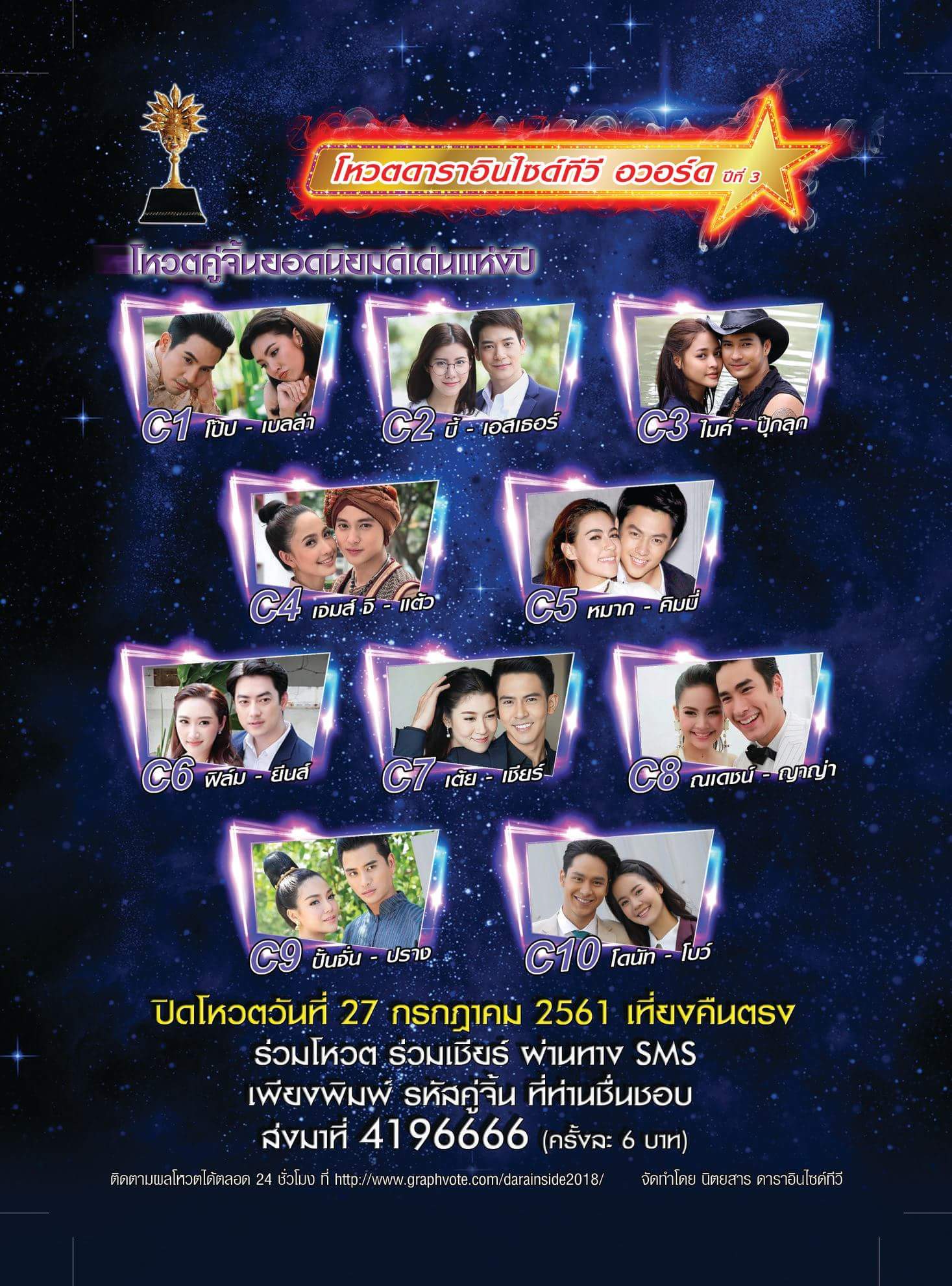 สามรถร่วมกดโหวตส่งแรงเชียร์แรงใจ ได้ตั้งแต่บัดนี้เป็นต้นไปติดตามข่าวสารหน้าเพจของ นิตยสารดาราอินไซด์ทีวี