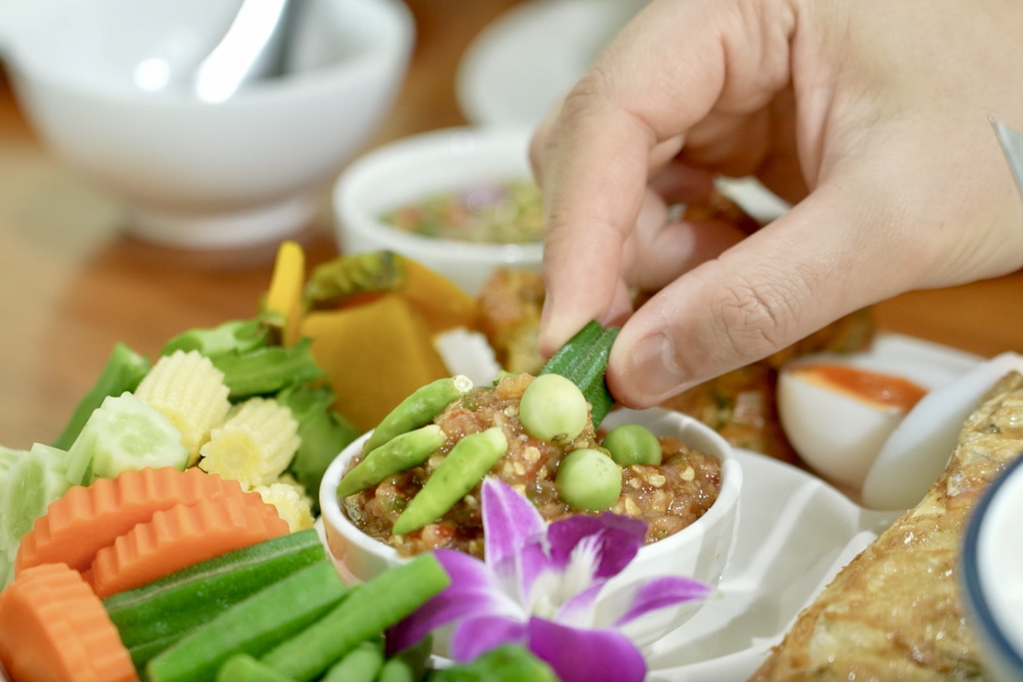 นอกจากนั้นยังมีเมนูยืนกินฟินกว่า กับ ”ขนมอีตุย“ ที่ ”ร้านยายจี๊ดขนมไข่หงส์“ ขนมเด็ดเก่าเเก่ของเมืองกาญจนบุรี กรอบขั้นสุดเเบบไม่เคยกินเเบบนี่ที่ไหนมาก่อน กินคาวแล้วกินหวาน กินหวานแล้วกินคาว ต่อด้วย ”ร้านพริกแกงอาหารป่า“ เป็นร้านอาหารพื้นถิ่น ซึ่งพริกเเกงกาญฯ เขาทําถึงมาก จัดจ้านหอมเครื่องเเกงเฉพาะตัว จน ”เชฟบุช“ ต้องนำมาเป็นวัตถุดิบหลักในการทำเมนูวันนี้ มาที่ร้านนี้เมนูที่ห้ามพลาดก็คือ แกงส้มญวน หรือ แกงส้มมะเขือเหลืองใส่พริกสด จัดเป็นอาหารถิ่นที่มีอัตลักษณ์ของคนไทยญวน ส่งต่อมานับ 100 ปี มาถึงเมืองกาญฯ ถ้าไม่ได้มาเที่ยวริมแม่น้ำแคว ก็คงเหมือนยังไม่ถึง 2 หนุ่ม ขอแวะพักเอาเท้าแช่น้ำที่ The For Rest Resort ที่พักเเพริมน้ําสุดชิล ริมเเม่น้ําเเควน้อย อ.ไทรโยก