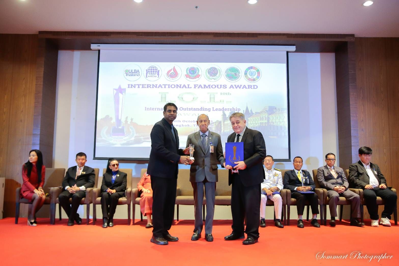 องค์กรนานาชาติ ในเครือ UN จัดมอบรางวัลเกียรติคุณนานาชาติ International Outstanding Leadership Award (I.O.L. Award) รางวัลผู้นำดีเด่นระดับนานาชาติ ครั้งที่ 10