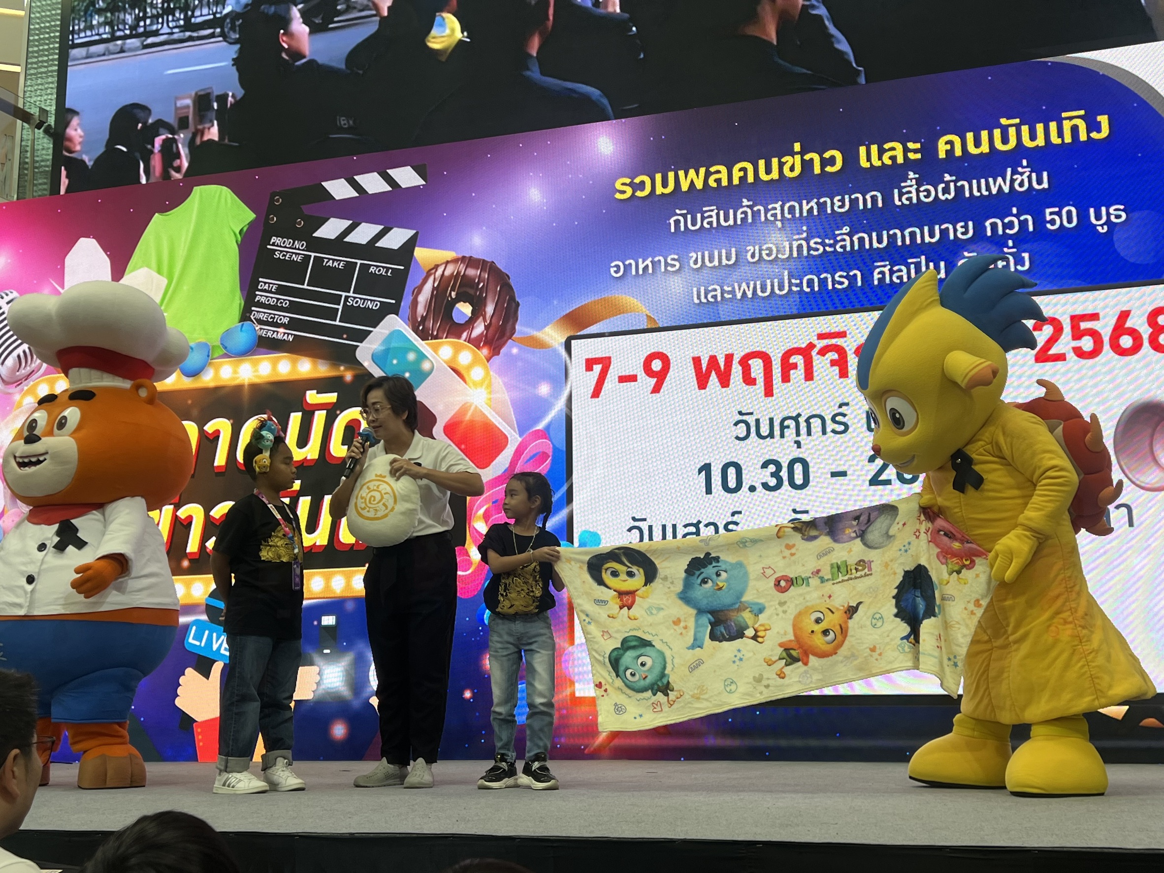 นำโดย พัดเดิ้ล และ สปาร์ค สองมาสคอตสุดน่ารักจาก แอนิเมชัน Out of the Nest องครักษ์พิทักษ์เจี๊ยบ ที่ชวนเพื่อน เชลล์ดอน หอยกู้โลก และ ซอนนี่ เชฟป่วนก๊วนอร่อย มาสร้างสีสันให้กับงาน พร้อมเชิญชวนเด็กถ่ายรูปและเดินทักทายพี่ๆตามบูธแถมเด็กๆยังตามไปช้อปสินค้าลิขสิทธ์สุดน่ารัก กันที่บูธอีกด้วย