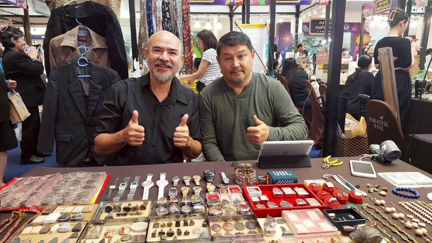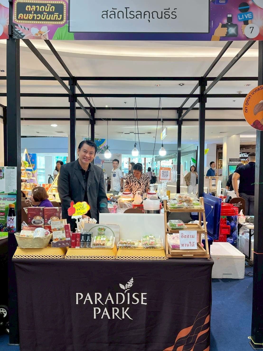 งานนี้ต้องของคุณ พาราไดซ์พาร์ค โดย คุณศตกมล วรกุล ผู้อำนวยการอาวุโส บริษัท อินเทลลิเจ้นท์ ครีเอทีฟ แอนด์ มาร์เก็ตติ้ง จำกัด นางสาววรารัตน์ บุณยานนท์ รองกรรมการผู้จัดการ บริษัท พาราไดซ์ พาร์ค จำกัด และแม่แอ๊ด ตลาดพูล นักข่าวอาวุโส จากชมรมนักข่าวบันเทิง ที่ร่วมกันจัดงานนี้ให้เหล่าคนในแวดวงบันเทิงได้มาพบกัน