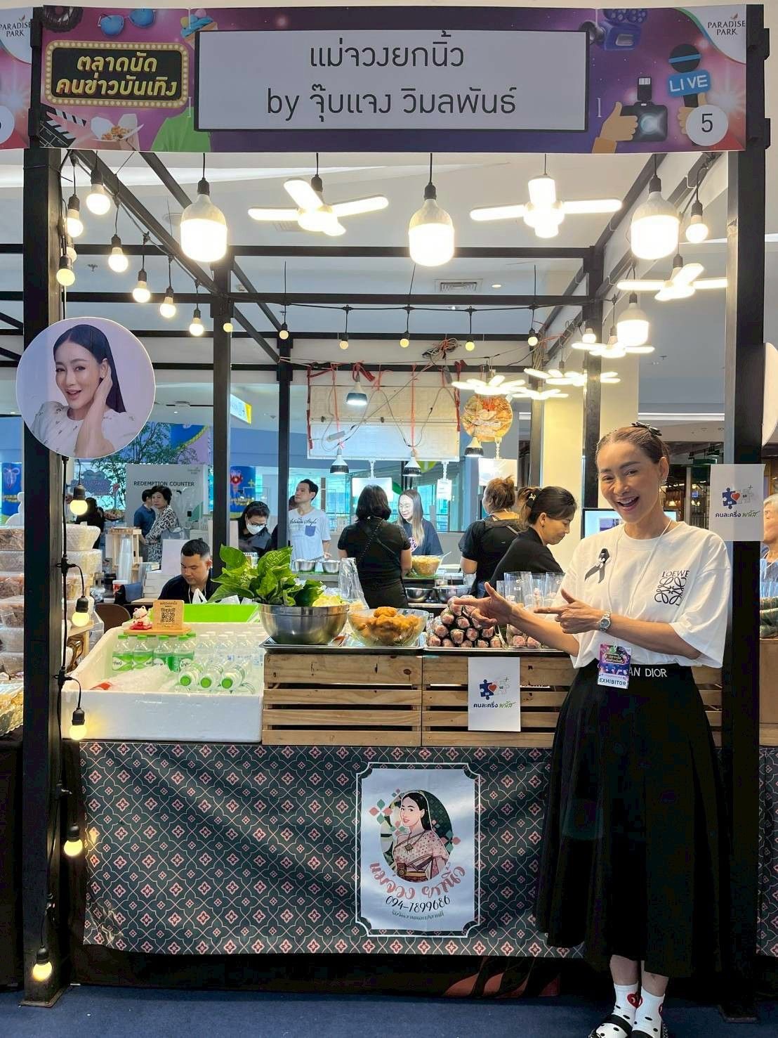 ส่วนโซนร้านค้าคนบันเทิงและคนข่าวกว่า 50 ร้าน เช่น ร้านส้มตำแม่น้อย โพธิ์งาม ร้านMAMECHA by แม็กกี้ อาภา ร้านJV by อุ๊บ วิริยะ ร้าน เรือนเกด ของเกด ธิญาดา พรรณบัว ร้านเกวลิน Food & Drink ของยีนส์ เกวลิน ร้านครูรัก ศรัทธา ศรัทธาทิพย์ ร้านคืนผืนป่าให้แม่ด้วยกาแฟพ่อ ของเอ สุรพันธ์ ชาวปากน้ำ และ ร้าน Mike Life Thailand ของไมค์ พลภัทร เวลส์ช รวมทั้งร้านคนดังอื่น ๆ เช่น ร้านแม่จวงยกนิ้ว by จุ๊บแจง วิมลพันธ์ ร้านห่อหมกแม่สาลี่ by แอน สาริตา และ ร้านสุริยาพระเครื่อง ของ ป๊อป สุริยา เป็นต้น นอกจากนี้ยังมีสินค้าคุณภาพจากอดีตนักข่าวและนักข่าวปัจจุบัน เช่น ร้าน Deezi Innerwear ร้านมะควร การ์เด้นท์ ของจอย ดาวกระจาย ร้านยำมาดามนัน ร้านมาหาสิน ร้าน KUDSAN Tookta Closet ร้าน Phenny made และอีกมากมาย
