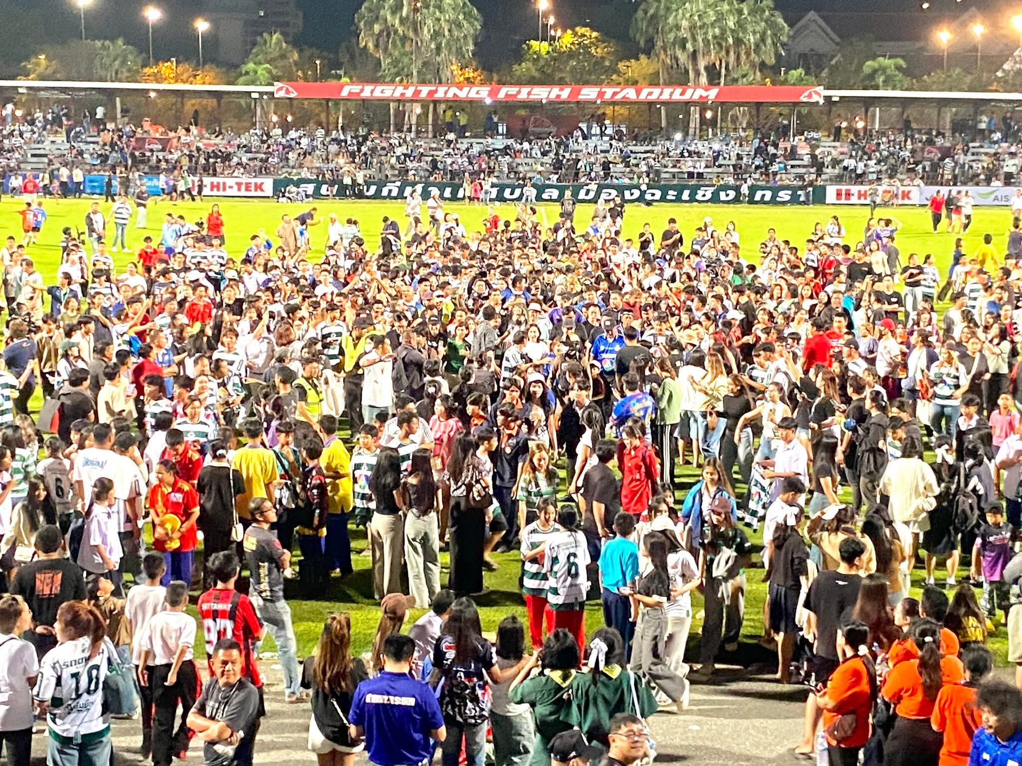 ส่วนทางด้านทีมนักฟุตบอลเยาวชนหมอนทองวิทยาซึ่งนำโดย โค้ช อ.สกลเกลี้ยงประเสริฐ มาพร้อมกับรถสองแถวคันสีน้ำเงินหรือที่แฟนบอลทุกคนรู้จักในนามของรถขนฝัน ที่มีน้องๆนักฟุตบอลทุกคนมากันอย่างพร้อมหน้าและโดยเฉพาะนักเตะขวัญใจมหาชน เต “วรากร ช่างเขียนดี”