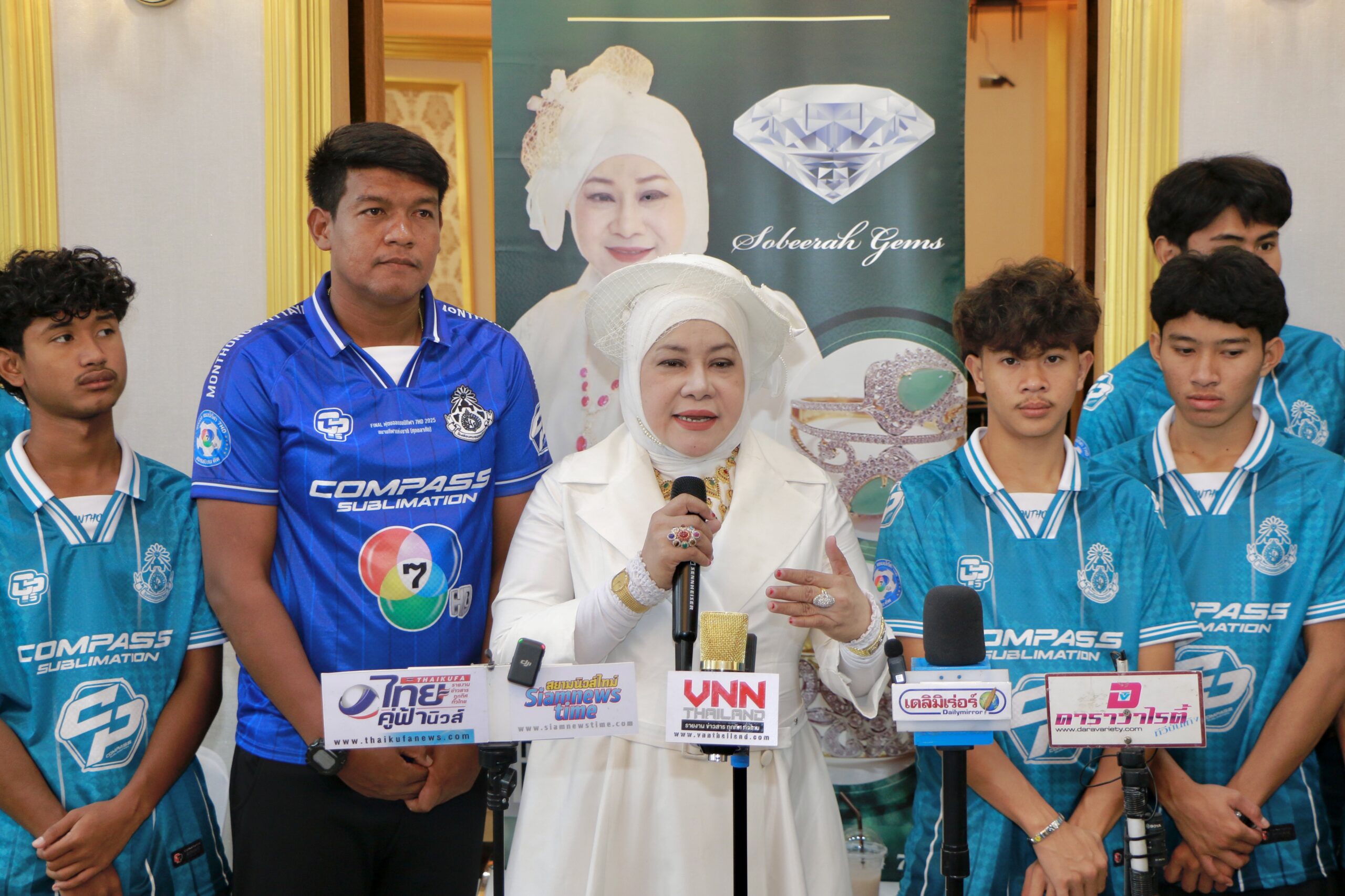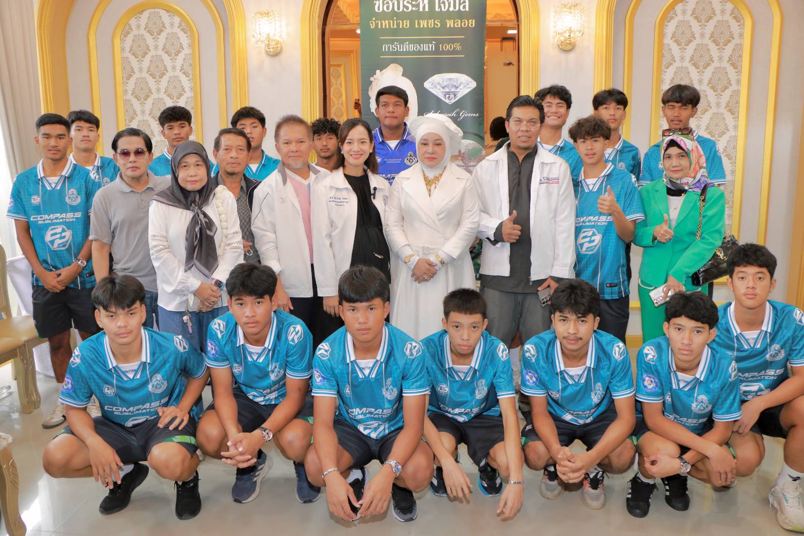 และในวันนี้ก็ได้มีโอกาสพาทีมนักฟุตบอลหมอนทองมาขอบคุณสปอนเซอร์ ร้านเพชรซอบีระห์เจมส์ ซึ่งตั้งอยู่ที่สถานีพัฒน์25เลียบทางรถไฟคลองตัน โดยได้รับการต้อนรับอย่างอบอุ่นจาก คุณแม่ซอบีระห์เจมส์ เจ้าของธุรกิจอัญมณีร้านเพชร ซอบีระห์ เจมส์