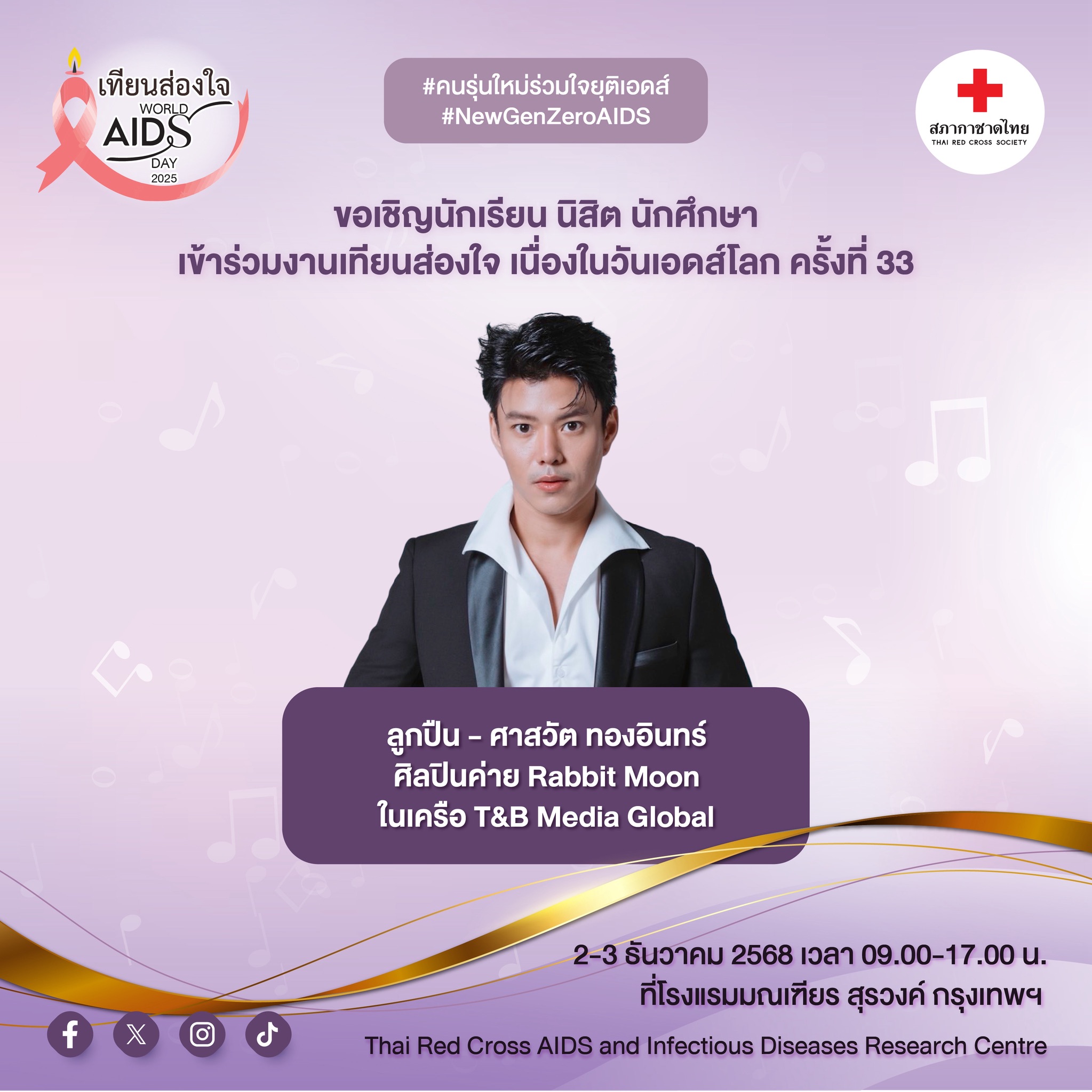 สภากาชาดไทย นำโดย ศูนย์วิจัยโรคเอดส์และโรคติดเชื้อ ร่วมกับภาคีเครือข่าย ขอเชิญเยาวชน นักเรียน นิสิต นักศึกษา ที่มีอายุไม่เกิน 30 ปี เข้าร่วมงานเทียนส่องใจ เนื่องในวันเอดส์โลก ครั้งที่ 33 ประจำปี 2568 ระหว่างวันที่ 2-3 ธันวาคม 2568 เวลา 09.00-17.00 น. ที่ห้องราชมณเฑียร แกรนด์ บอลรูม โรงแรมมณเฑียร สุรวงศ์ กรุงเทพฯ ภายใต้แนวคิด “คนรุ่นใหม่ร่วมใจยุติเอดส์ : New Gen Zero AIDS” ร่วมเรียนรู้การป้องกันโรคติดต่อทางเพศสัมพันธ์และโรคอุบัติใหม่ ชมนิทรรศการ การเสวนาให้ความรู้จากผู้เชี่ยวชาญ รับของที่ระลึกมากมาย และรับเกียรติบัตร สามารถลงทะเบียนผ่านแอปพลิเคชัน “อาสาสมัครกาชาด” ไปที่ “งานทั่วไป” เลือก “กิจกรรมเทียนส่องใจ เนื่องในวันเอดส์โลก ครั้งที่ 33” แล้วเลือก “จอง” ติดต่อสอบถามคุณสายทอง ศรีภิญโญ โทร. 08 9111 7780 สำนักงานยุวกาชาดและอาสาสมัครกาชาด สภากาชาดไทย หรือ walk in สอบถามได้ที่เฟซบุ๊กเพจ คลินิกนิรนาม ศูนย์วิจัยโรคเอดส์และโรคติดเชื้อ สภากาชาดไทย