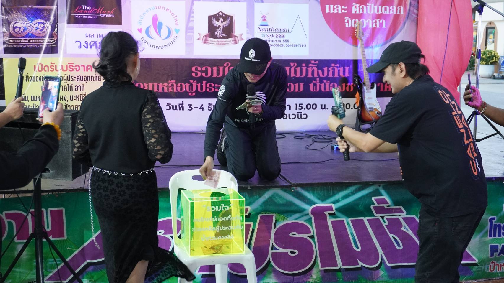 และศิลปินพันหน้า ซ่าส์ หมาว้อ ชาลี พันหน้า หมุนเวียนสลับสับเปลี่ยน กับนักร้องจิตอาสา ศิลปินจิตอาสา รวมถึงน้องๆนักเรียนนักศึกษาขึ้นร้องเพลงร่วมแจม เรียกเสียงกรี๊ด ดังสนั่นลั่นบนเวที สร้างความสุขให้กับผู้ที่มาร่วมทำบุญร่วมบริจาคสิ่งของอย่างมีความสุขร่วมสนุกไปกับงาน