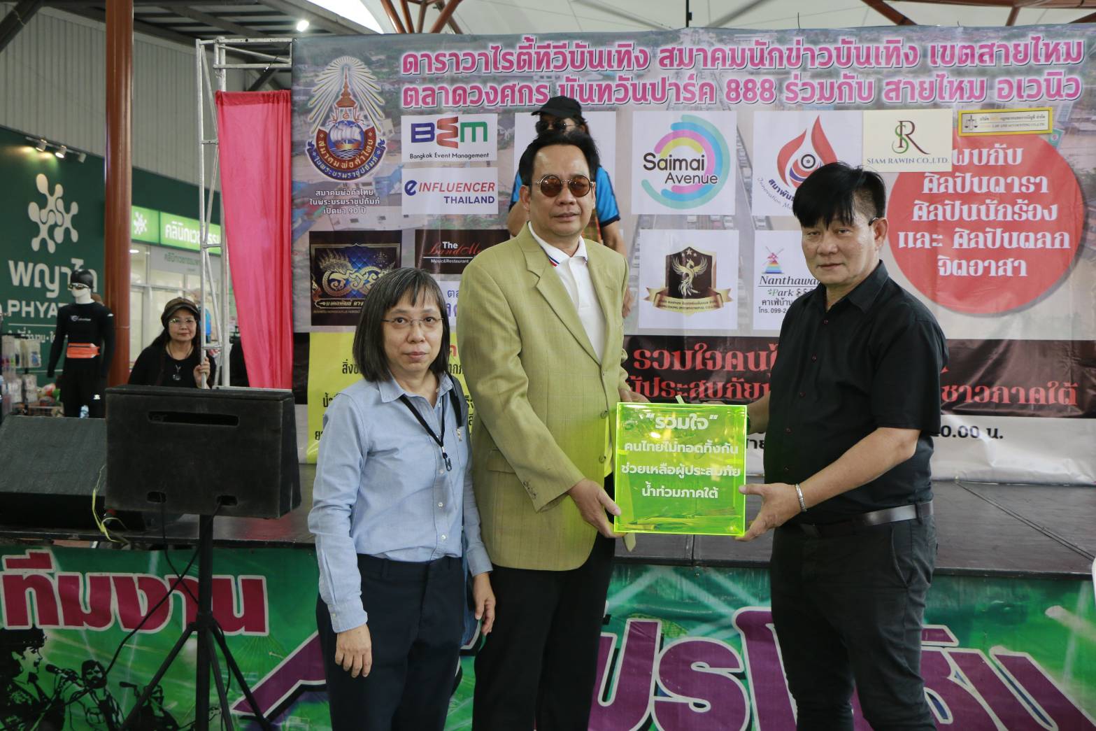 ดาราวาไรตี้ทีวีบันเทิง สมาคมนักข่าวบันเทิงร่วมกับ “สายไหมอเวนิว”โดยมีผู้อำนวยการเขตสำนักงานเขตสายไหม เป็นประธานในการเปิดงาน เปิดรับบริจาคช่วยเหลือพี่น้องประชาชนที่ประสบอุทกภัยน้ำท่วมภาคใต้ พร้อมเหล่าบรรดาศิลปินดารานักร้องจิตอาสาร่วมงาน