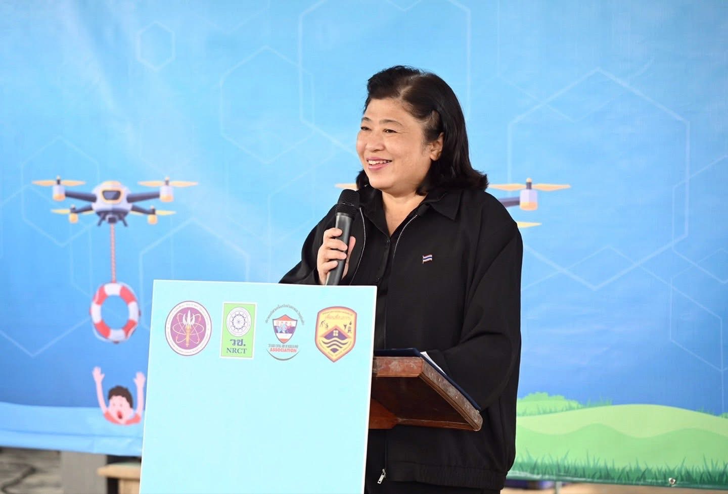 ดร.วิภารัตน์ ดีอ่อง ผู้อำนวยการสำนักงานการวิจัยแห่งชาติ กล่าวว่า วช. มุ่งสนับสนุนงานวิจัยนวัตกรรมที่นำไปใช้ประโยชน์ โดยผลงานที่สามารถยกระดับความปลอดภัยของประชาชนในพื้นที่เสี่ยงภัยภาคเหนือและภาคใต้ การนำเทคโนโลยีโดรนมาใช้ช่วยสำรวจ ประเมินสถานการณ์ และสนับสนุนการช่วยเหลือในพื้นที่เสี่ยงภัย จะเพิ่มความแม่นยำ ลดเวลาเข้าถึงพื้นที่ และเสริมความปลอดภัยให้เจ้าหน้าที่ได้อย่างมีประสิทธิภาพ การจัดตั้งศูนย์ศึกษาและพัฒนาระบบการใช้โดรนแห่งนี้ จึงเป็นกลไกสำคัญในการพัฒนาระบบปฏิบัติการโดรน ถ่ายทอดองค์ความรู้ให้เจ้าหน้าที่และอาสาสมัคร เสริมศักยภาพชุมชนต้นแบบด้านการเตรียมพร้อมรับมือภัยพิบัติ และขยายการใช้นวัตกรรมไปยังพื้นที่เสี่ยงภัยอื่นทั้งในภาคเหนือและภาคใต้