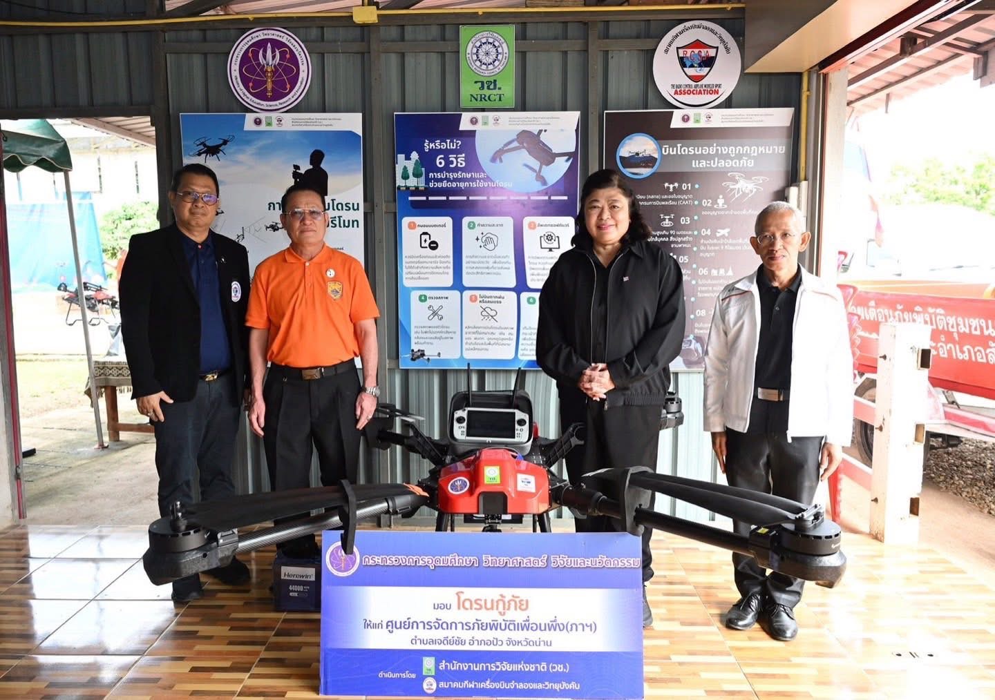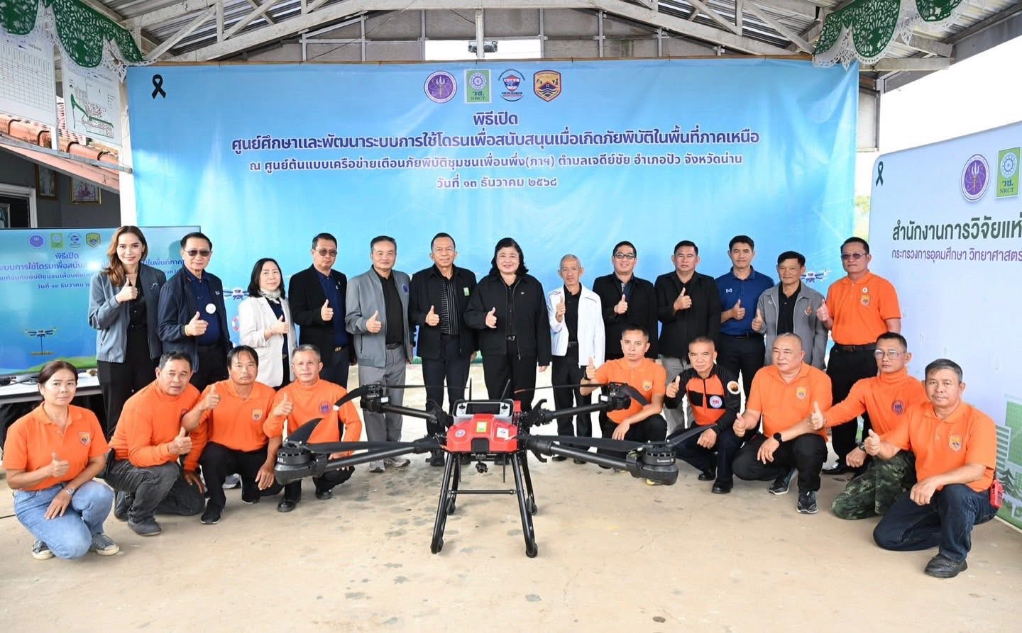 วช. เปิดศูนย์พัฒนาระบบการใช้โดรนเพื่อสนับสนุนเมื่อเกิดภัยพิบัติ ณ ศูนย์ต้นแบบเครือข่ายเตือนภัยพิบัติชุมชนเพื่อนพึ่ง(ภาฯ) ต.เจดีย์ชัย อ.ปัว จ.น่าน