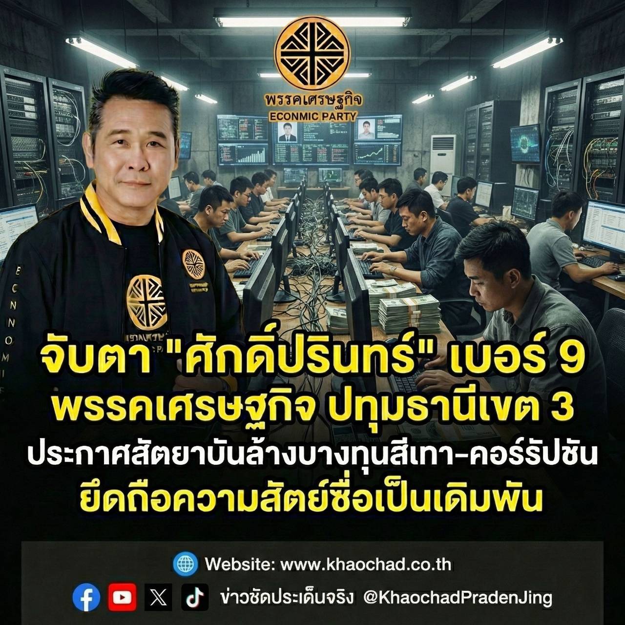 จับตา “ศักดิ์ปรินทร์” เบอร์ 9 พรรคเศรษฐกิจ ปทุมธานีเขต 3 ประกาศสัตยาบันล้างบางทุนสีเทา-คอร์รัปชัน ยึดถือความสัตย์ซื่อเป็นเดิมพัน