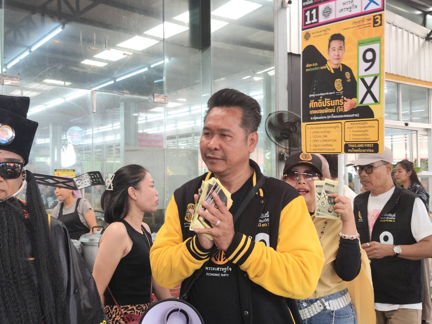 วันนี้ 7 ก.พ.69 เวลาประมาณ 09.30 น. นายศักดิ์ปรินทร์ เกษมธนพัฒน์ ผู้สมัคร ส.ส.ปทุมธานี เขต 3 พรรคเศรษฐกิจ เบอร์ 9 นำทีมผู้ช่วยหาเสียง แต่งชุด “เปาปุ้นจิ้น” และ “สไปไทย” ลงพื้นที่หาเสียง โค้งสุดท้าย ณ บริเวณ ตลาดพี่ญาคนรุม ปากซอย 13/3 ต.คลองสาม อ.คลองหลวง จ.ปทุมธานี อ้อนขอคะคะแนน ขอโอกาสให้กับพรรคเศรษฐกิจ เลือก พล.อ.รังษี เป็นนายกรัฐมนตรี คนที่ 33 ของประเทศไทย ต่อไป มีประชาชน ให้ความสนใจ จำนวนมาก