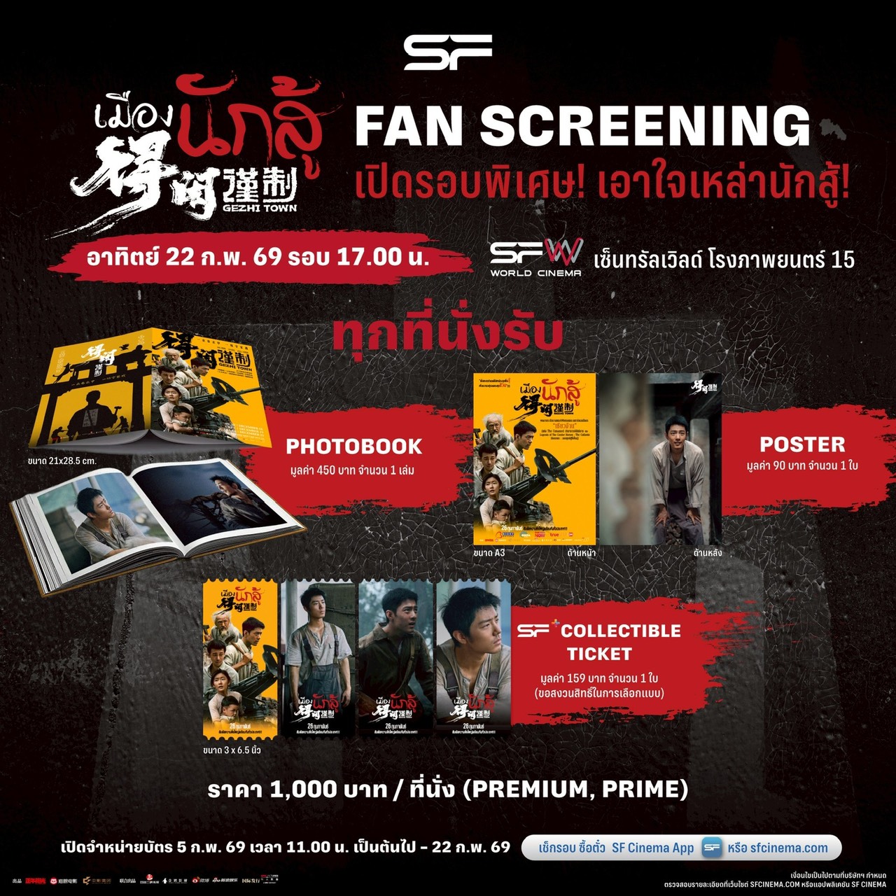 สัมผัสความละเมียดละไมในการสร้างของ “Gezhi Town – เมืองนักสู้” ในรอบดูก่อนใคร 17 กุมภาพันธ์นี้ เวลา 1 ทุ่มตรงที่ สยามภาวลัย พารากอน ซีนีเพล็กซ์ และ SF World Cinema โรงที่ 15 , รอบ Fanscreen วันที่ 22 มกราคม เวลา 5 โมงเย็น พร้อม “ของที่ระลึก” สุด Exclusive เพื่อ “คนรักเซียวจ้าน” โดยเฉพาะอาทิ เสื้อยืด, แฮนด์บิลล์, โปสเตอร์,โฟโต้บุ๊ค, Collectible Ticket ฯลฯ และรอบปกติเริ่ม 26 กุมภาพันธ์ นี้เป็นต้นไป