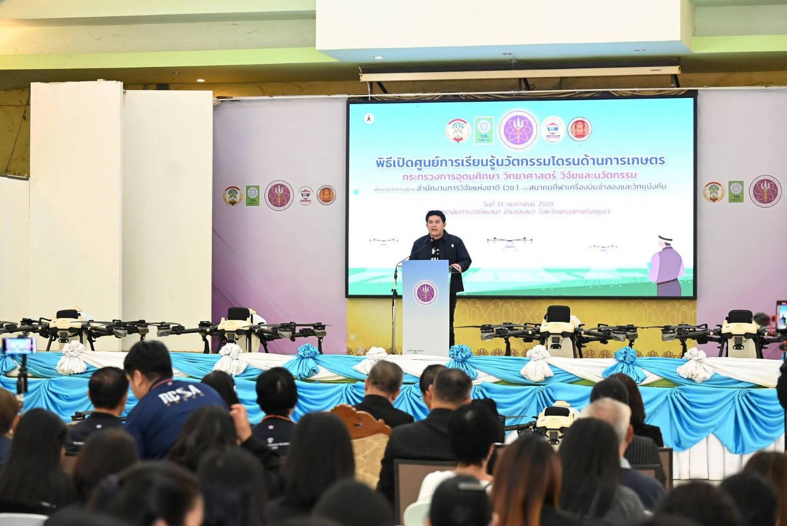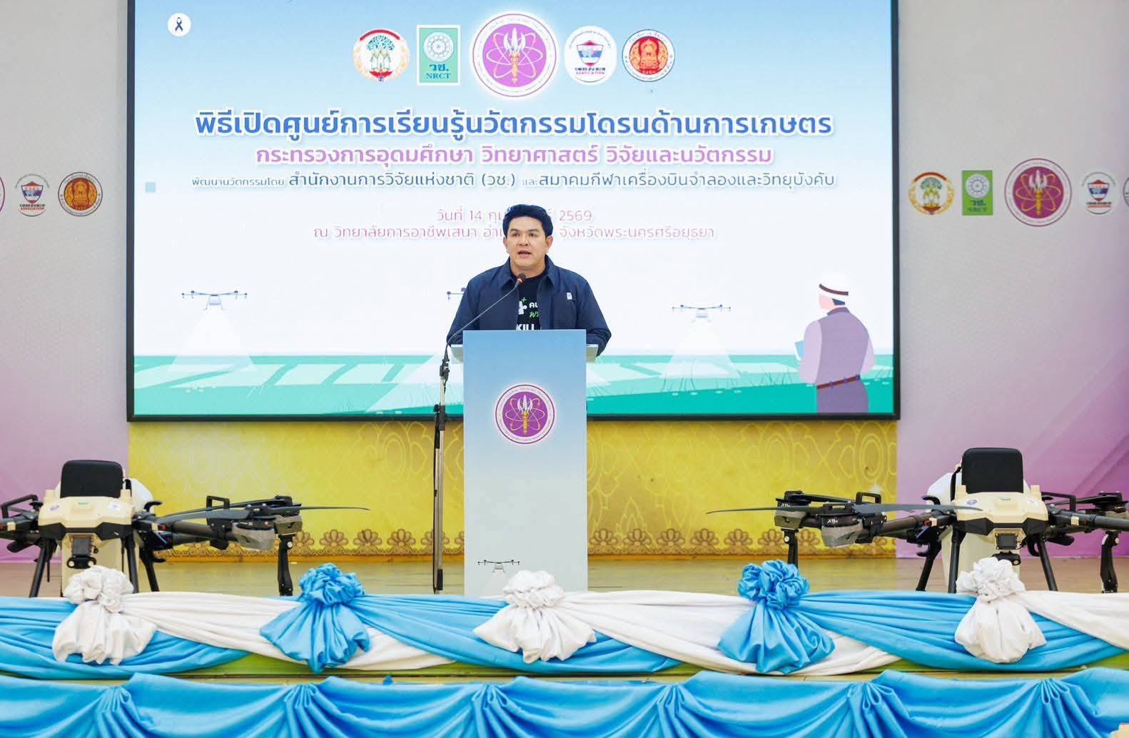 เมื่อวันที่ 14 กุมภาพันธ์ 2569 นายสุรศักดิ์ พันธ์เจริญวรกุล รัฐมนตรีว่าการกระทรวงการอุดมศึกษา วิทยาศาสตร์ วิจัยและนวัตกรรม เป็นประธานในพิธีเปิด “ศูนย์การเรียนรู้เทคโนโลยีและนวัตกรรมโดรนเพื่อการเกษตร” โดยมี ดร.วิภารัตน์ ดีอ่อง ผู้อำนวยการสำนักงานการวิจัยแห่งชาติ, นายพิศิษฐ์ มิตรเกื้อกูล นายกสมาคมกีฬาเครื่องบินจำลองและวิทยุบังคับ พร้อมด้วย นางสาวอารินทร์ แสงทอง นายอำเภอเสนา, นางสมพิศ โยมา ผู้อำนวยการวิทยาลัยการอาชีพเสนา คณะผู้บริหาร นักวิจัย คณาจารย์ นักศึกษา และหน่วยงานที่เกี่ยวข้องในพื้นที่ให้การต้อนรับ ณ วิทยาลัยการอาชีพเสนา จังหวัดพระนครศรีอยุธยา