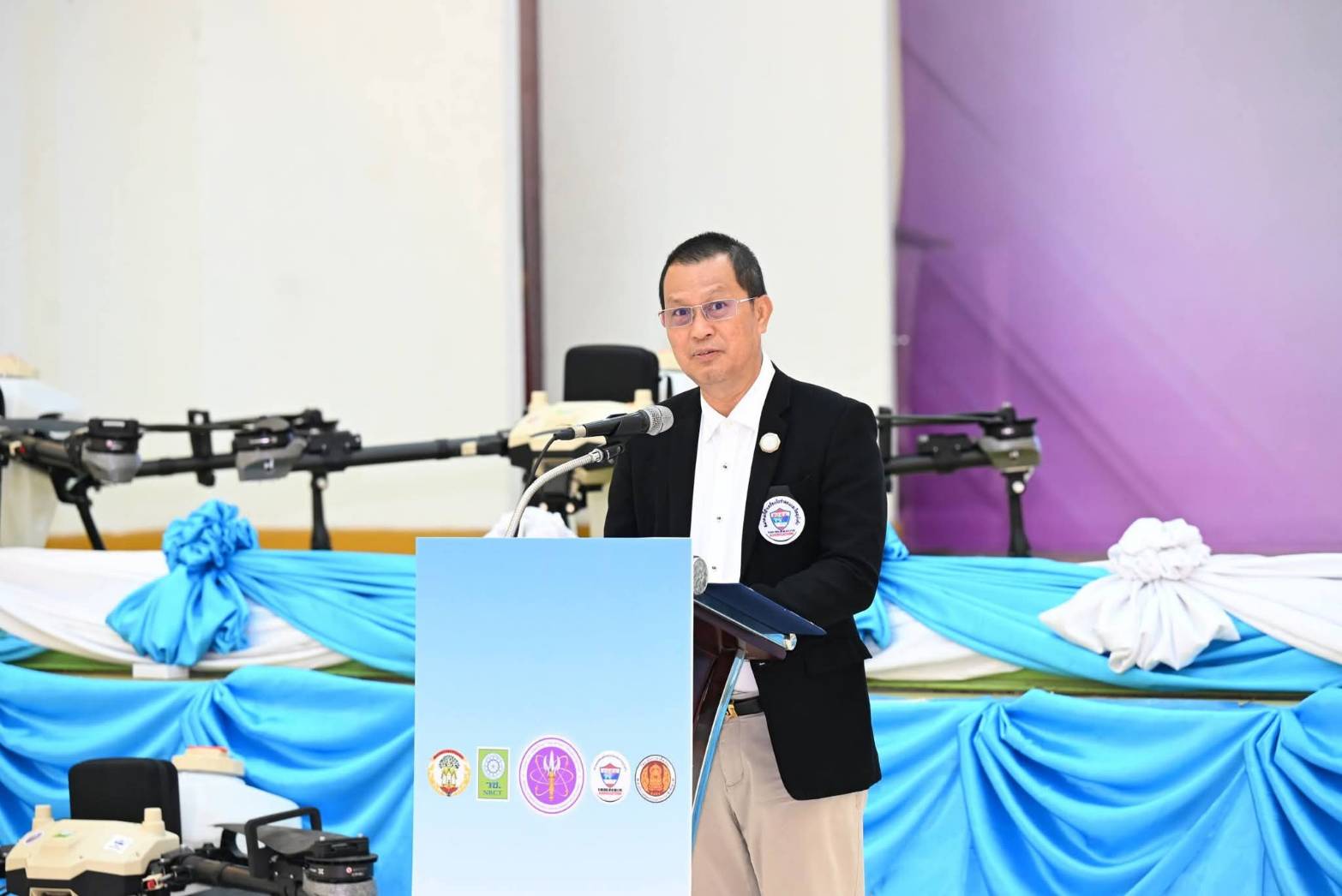 ส่วน นายพิศิษฐ์ มิตรเกื้อกูล นายกสมาคมกีฬาเครื่องบินจำลองและวิทยุบังคับ กล่าวว่า ทางสมาคมฯ ซึ่งได้รับการสนับสนุนทุนวิจัยจาก วช. พร้อมสนับสนุนองค์ความรู้และผู้เชี่ยวชาญในการฝึกอบรมการบังคับอากาศยานไร้คนขับ เพื่อยกระดับมาตรฐานความปลอดภัยและประสิทธิภาพการใช้งานโดรน ทั้งในภาคการเกษตรและส่งเสริมกิจกรรมด้านการท่องเที่ยวต่อไป