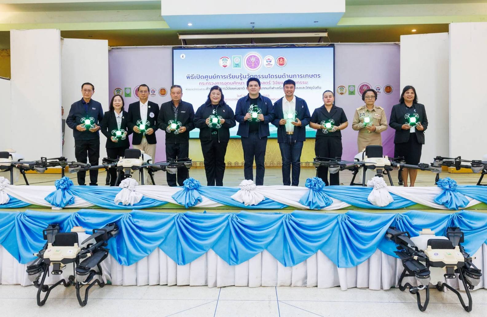 ด้าน ดร.วิภารัตน์ ดีอ่อง ผู้อำนวยการสำนักงานการวิจัยแห่งชาติ กล่าวว่า วช. ในฐานะหน่วยงานภายใต้กระทรวง อว. ให้ความสำคัญกับการนำงานวิจัยและนวัตกรรมไปใช้ประโยชน์ในพื้นที่ (Area-based) ศูนย์การเรียนรู้แห่งนี้จะเป็นต้นแบบสำคัญของการบูรณาการระหว่างหน่วยงานภาครัฐและสถานศึกษา เพื่อถ่ายทอดเทคโนโลยีโดรน ฝึกอบรมเชิงปฏิบัติการ และพัฒนากำลังคนสมรรถนะสูง รองรับโลกยุคดิจิทัล