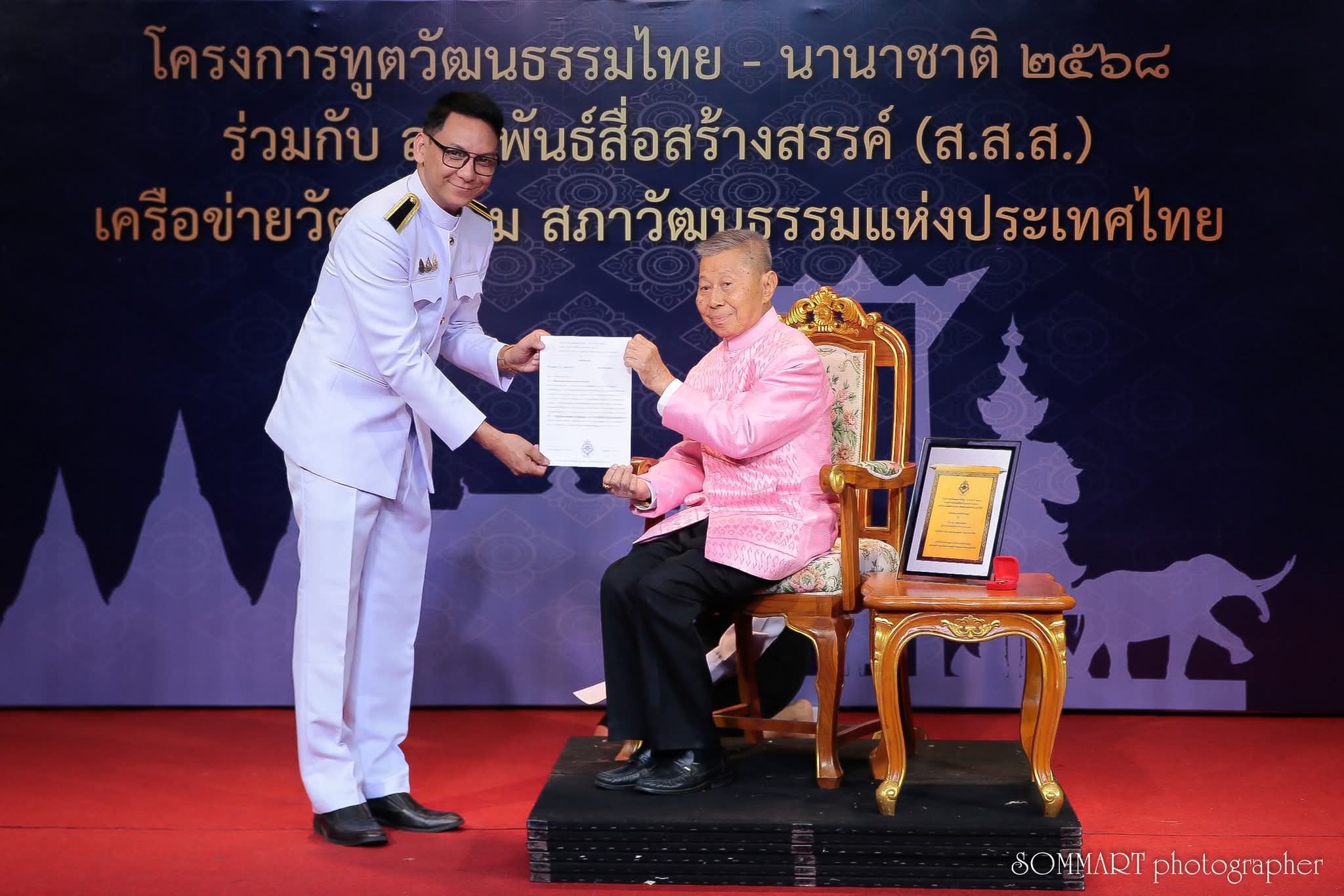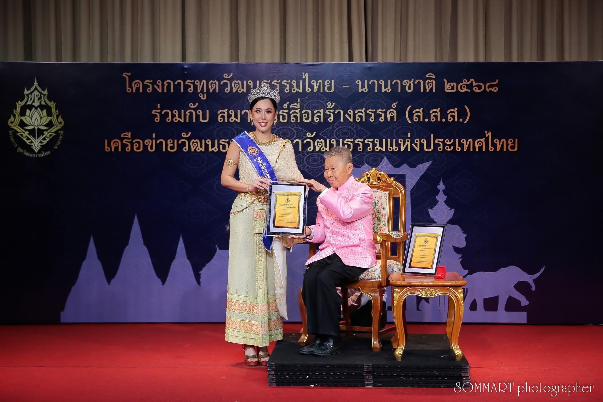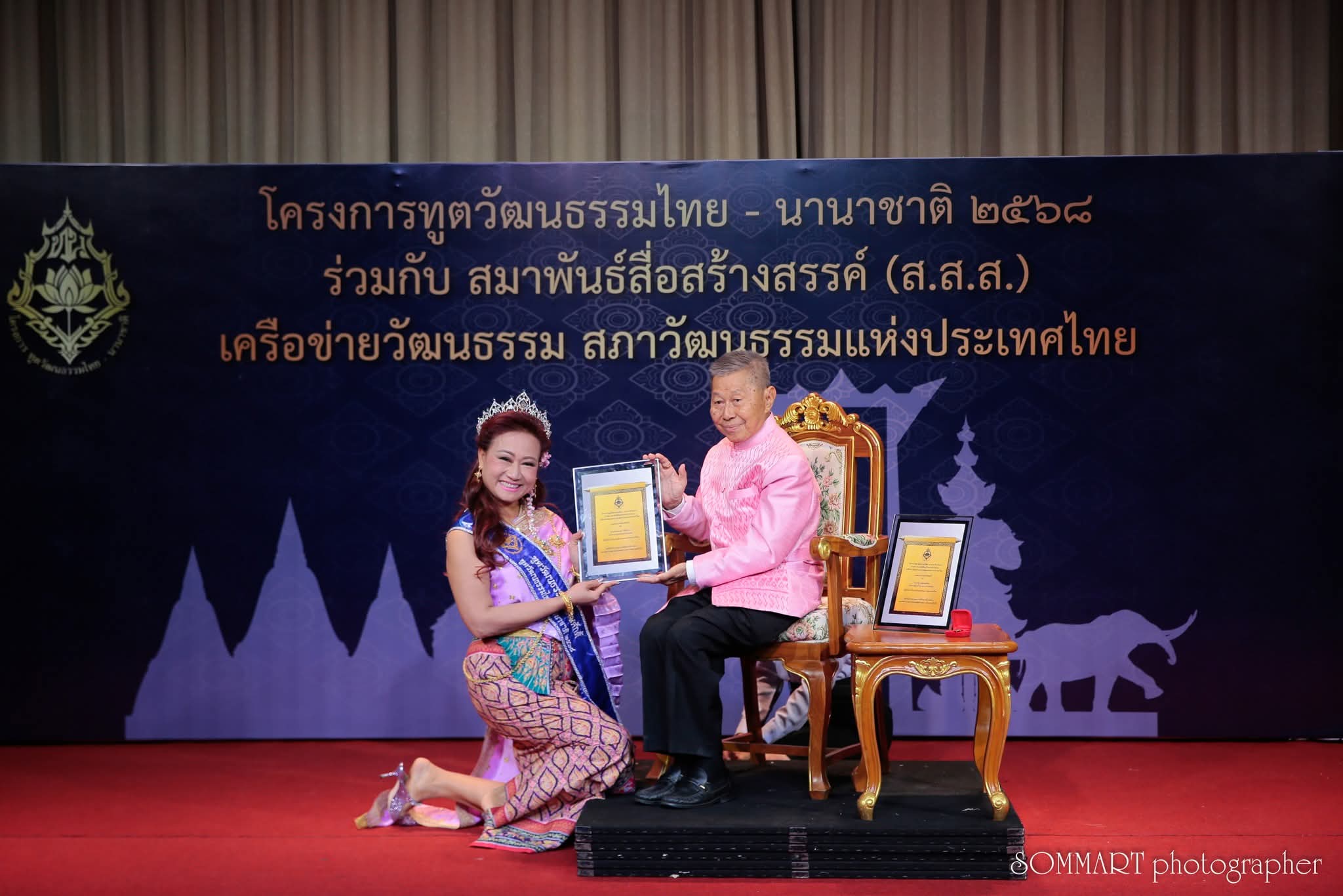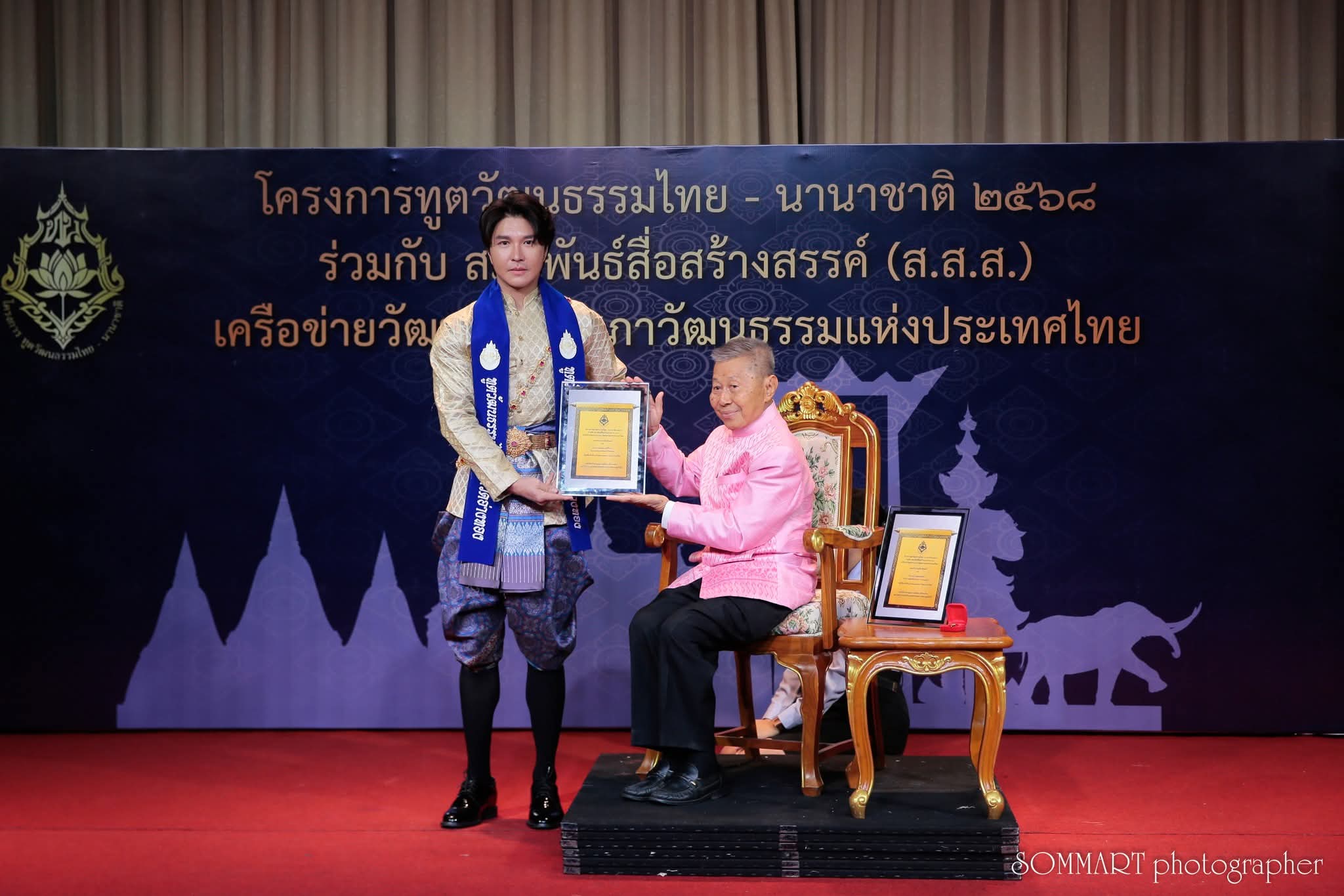 สำหรับงานพิธีการมอบใบแต่งตั้งทูตฯลฯ ครั้งนี้ทางคณะผู้จัดงานได้รับความเมตตาจาก ท่านพลตรีหม่อมราชวงค์วัยวัฒน์ จักรพันธ์ โอรสในพระวรวงค์เธอพระองค์เจ้าดรุณวัยวัยวัฒน์ ปนัดดาในสมเด็จพระเจ้าบรมวงศ์เธอเจ้าฟ้าจาตุรมต์รัศมีกรมพระจักรพรรดิพงษ์ ประธานสภาประชาชนแห่งชาติ เป็นผู้มอบใบแต่งตั้งทูตวัฒนธรรมไทย-นานาชาติ ร่วมกับสมาพันธ์สื่อสร้างสรรค์(ส.ส.ส.)เครือข่ายวัฒนธรรม สภาวัฒนธรรมแห่งประเทศไทย ณ.วังสวนสุนันทา