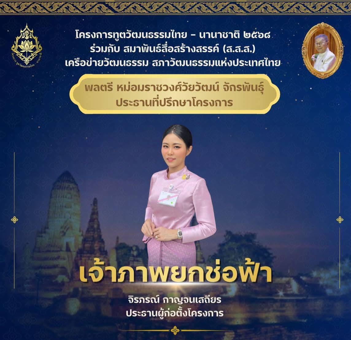 โดย คุณ”จิรภรณ์ กาญจนเสถียร” ประธานผู้ก่อตั้งโครงการทูตวัฒนธรรมไทย – นานาชาติ ๒๕๖๘