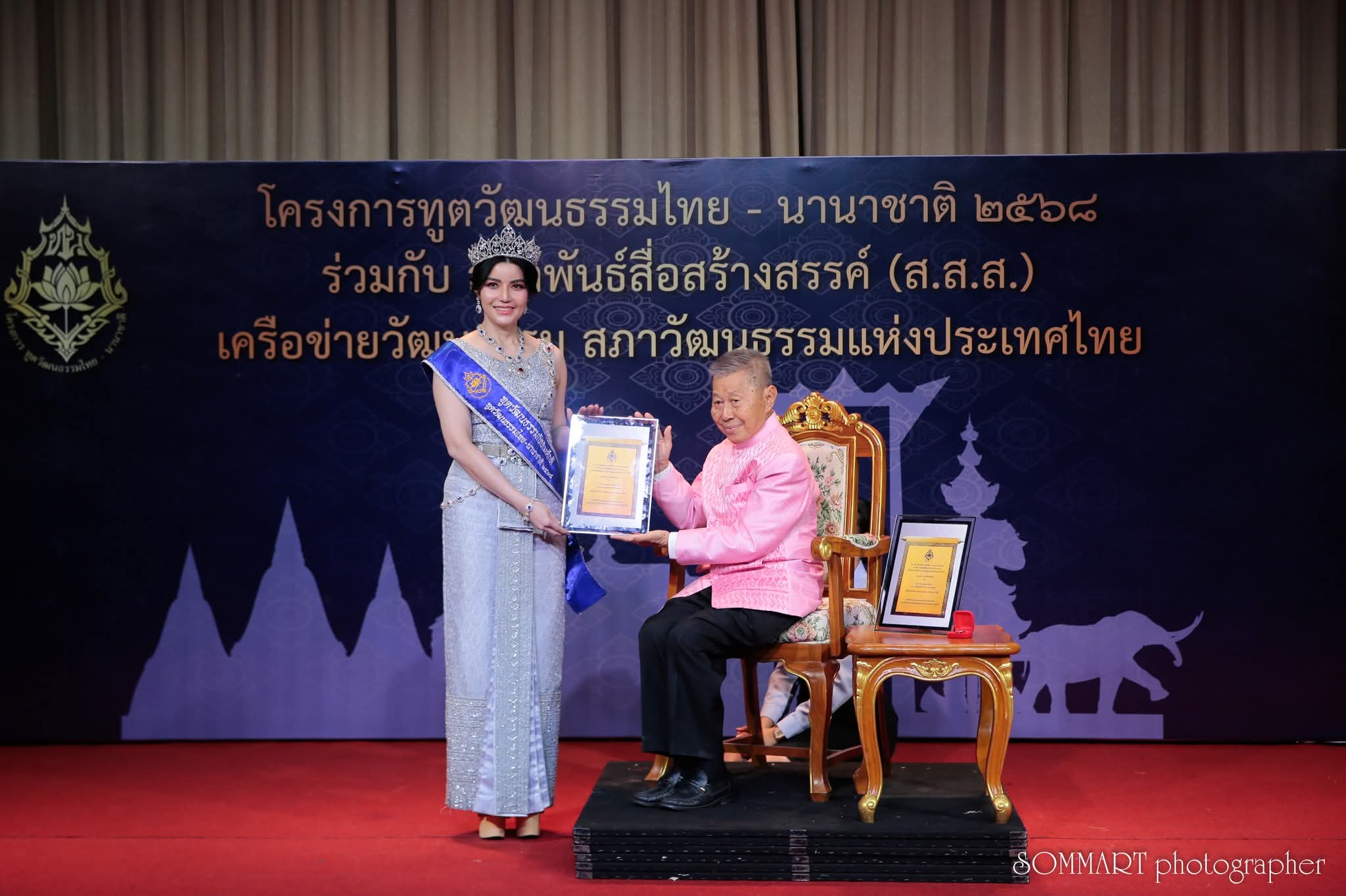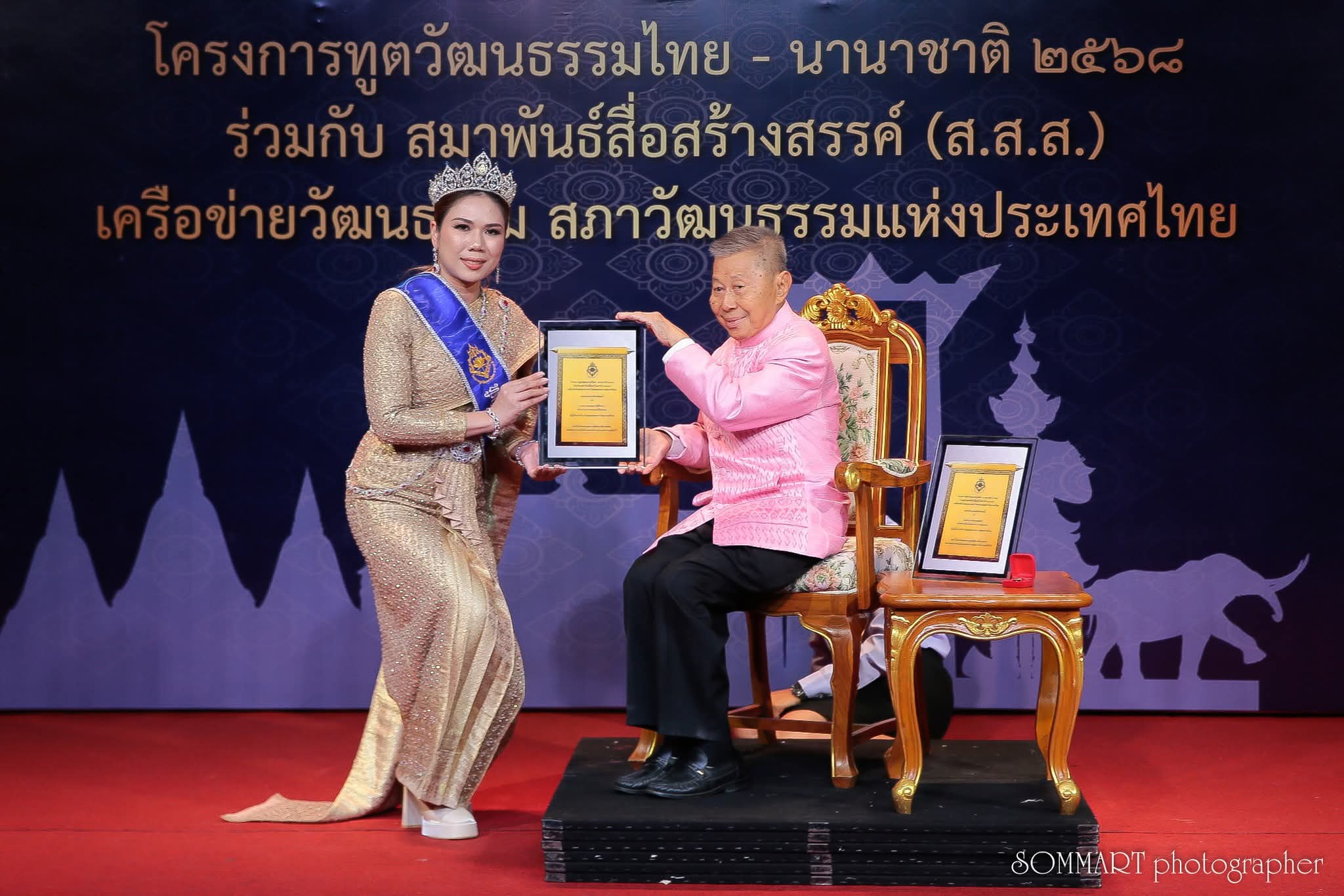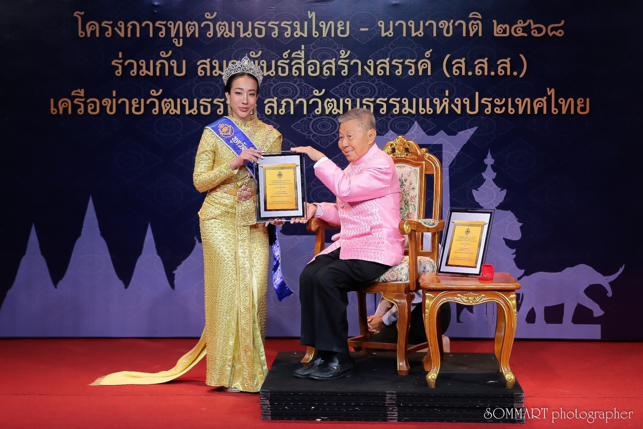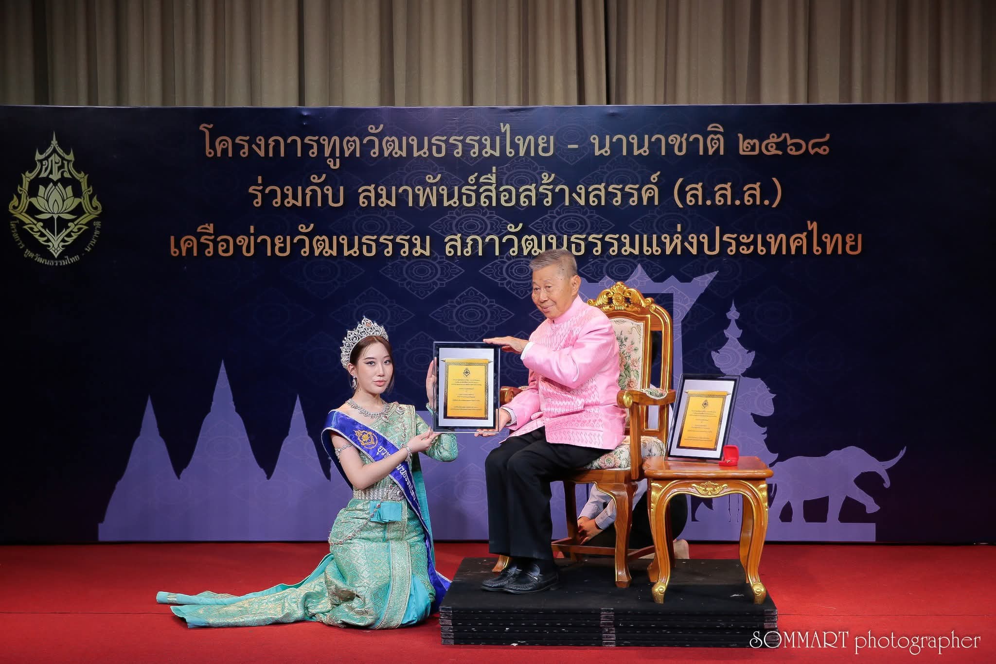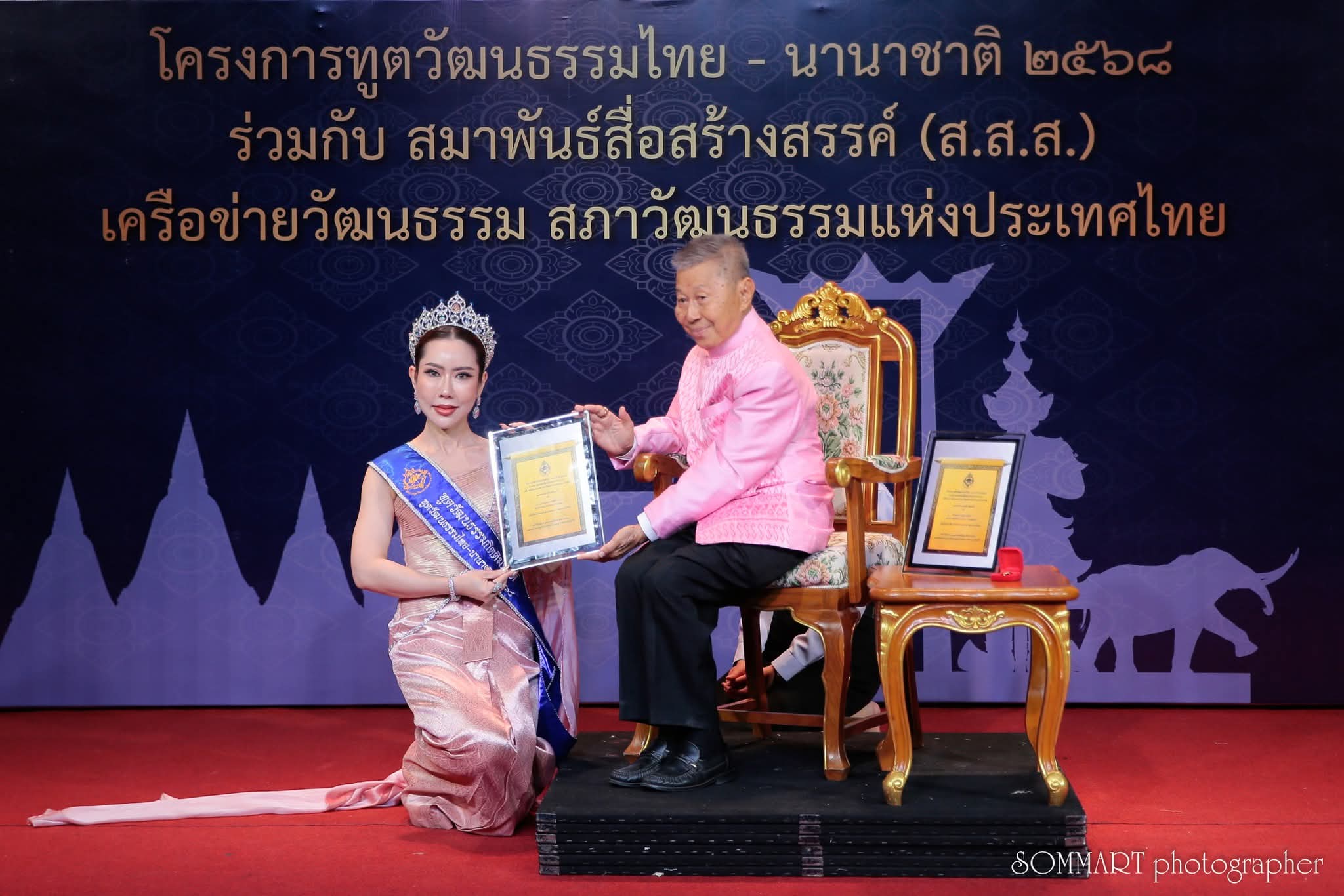เมื่อวันที่ 25 มกราคม 2569 ที่ผ่านมา โครงการทูตวัฒนธรรมไทย-นานาชาติ ร่วมกับสมาพันธ์สื่อสร้างสรรค์ (ส.ส.ส.) เครือข่ายวัฒนธรรม สภาวัฒนธรรมแห่งประเทศไทย ได้จัดให้มีพิธีการมอบใบแต่งตั้งและเปิดตัวทูตวัฒนธรรมไทย-นานาชาติโดยมี คุณ”จิรภรณ์ กาญจนเสถียร” ประธานผู้ก่อตั้งโครงการทูตวัฒนธรรมไทย – นานาชาติ ๒๕๖๘ และ “ดร.สมมารถ พึ่งจันดุม”รองประธานสมาพันธ์สื่อสร้างสรรค์ (ส.ส.ส.) เครือข่ายวัฒนธรรม สภาวัฒนธรรมแห่งประเทศไทย พร้อมด้วยตัวแทนทูตวัฒนธรรมไทย-นานาชาติ ซึ่งเป็นทูตฯลฯตัวแทนจากจังหวัดต่างๆในประเทศไทย และเป็นทูตฯลฯตัวแทนจากต่างประเทศหลายประเทศ รวมถึงยุวทูต ที่ได้เดินทางร่วมงานในพิธีการมอบใบแต่งตั้ง มงกุฎ,สายสะพายในครั้งนี้ เป็นจำนวนทั้งสิ้น 78 คน