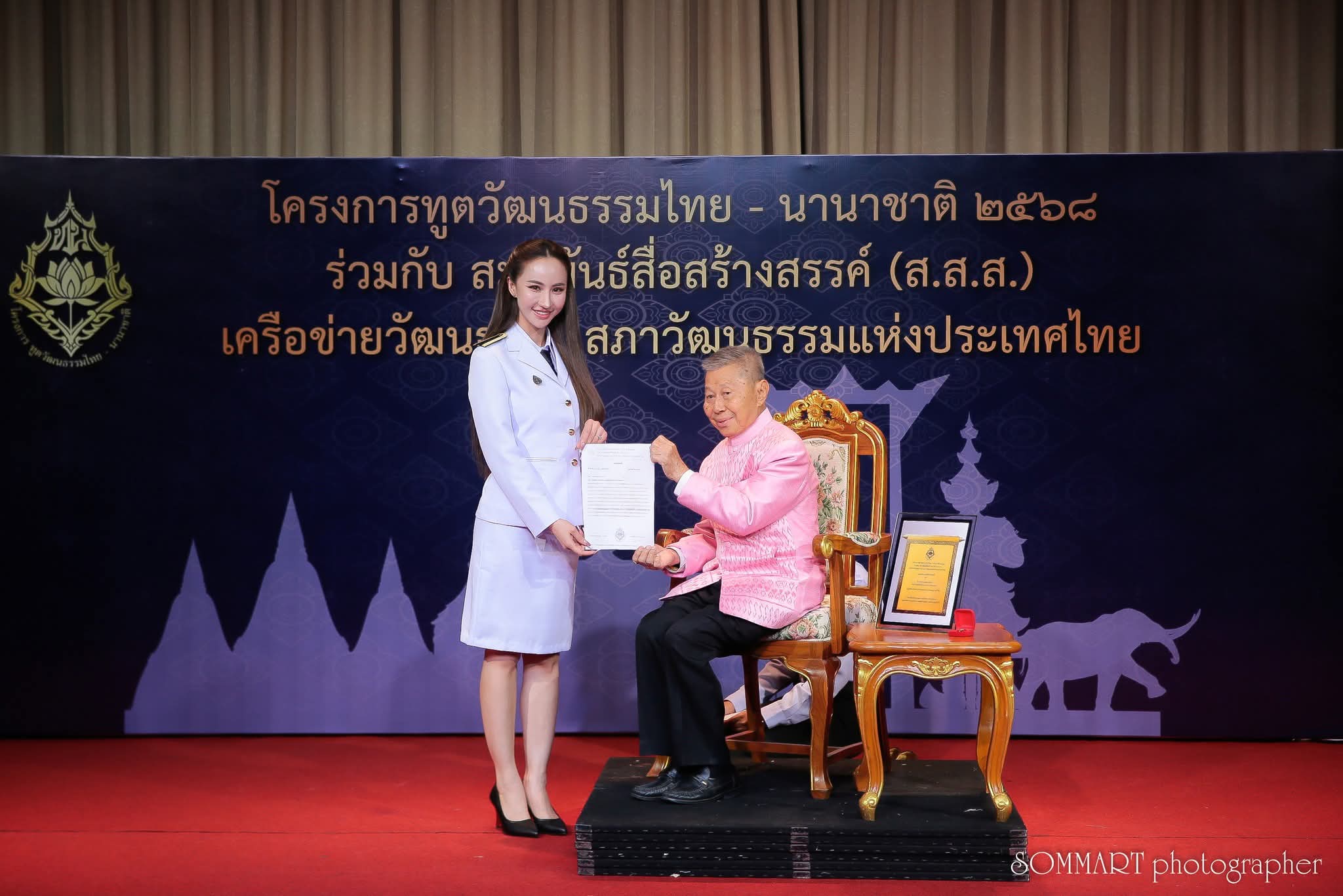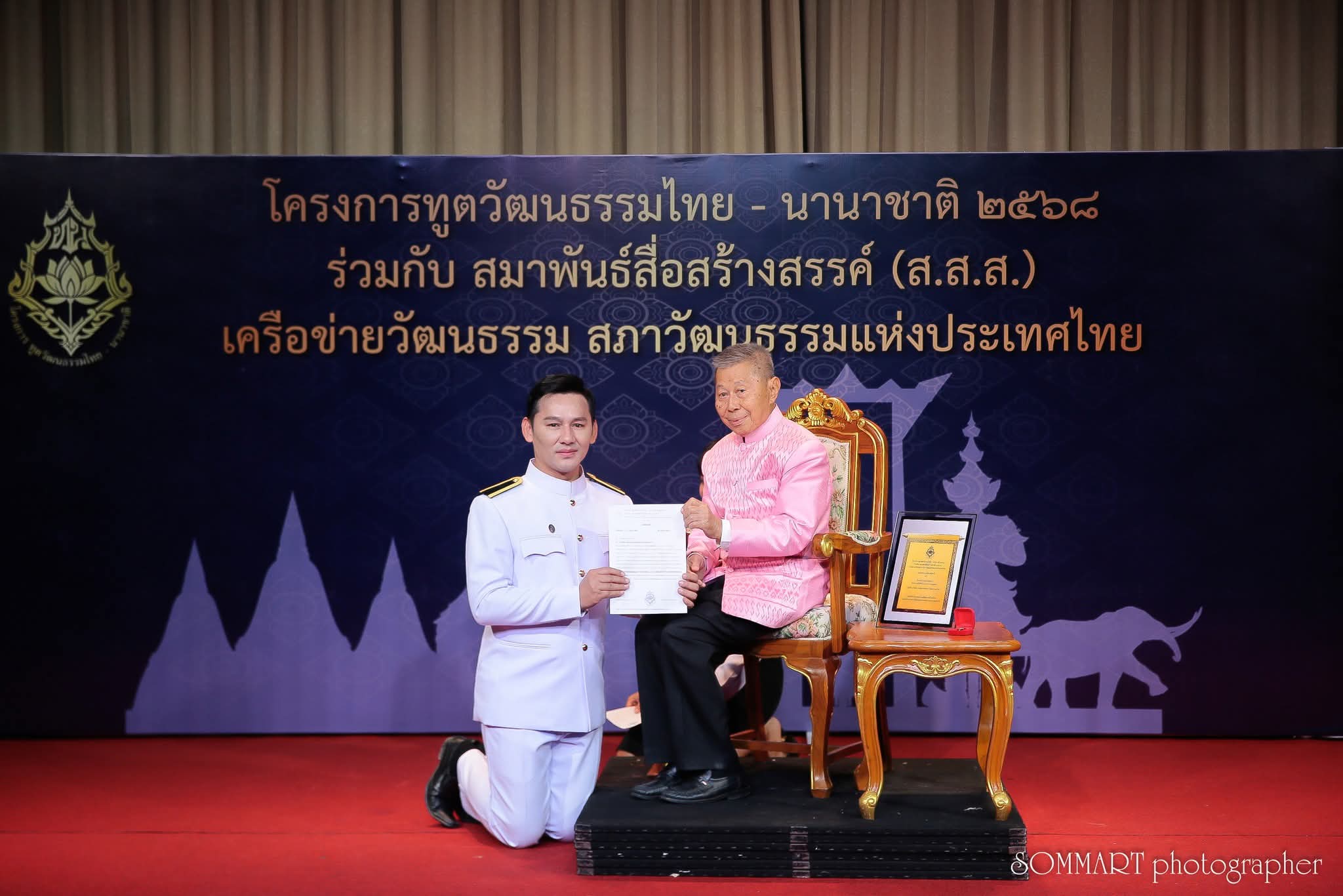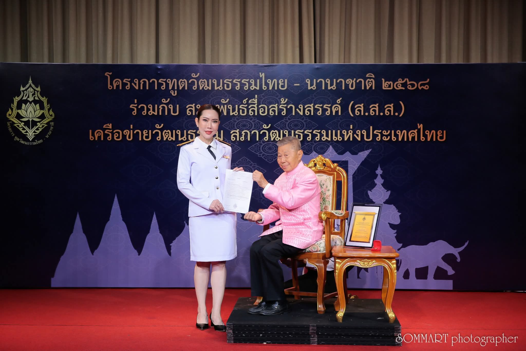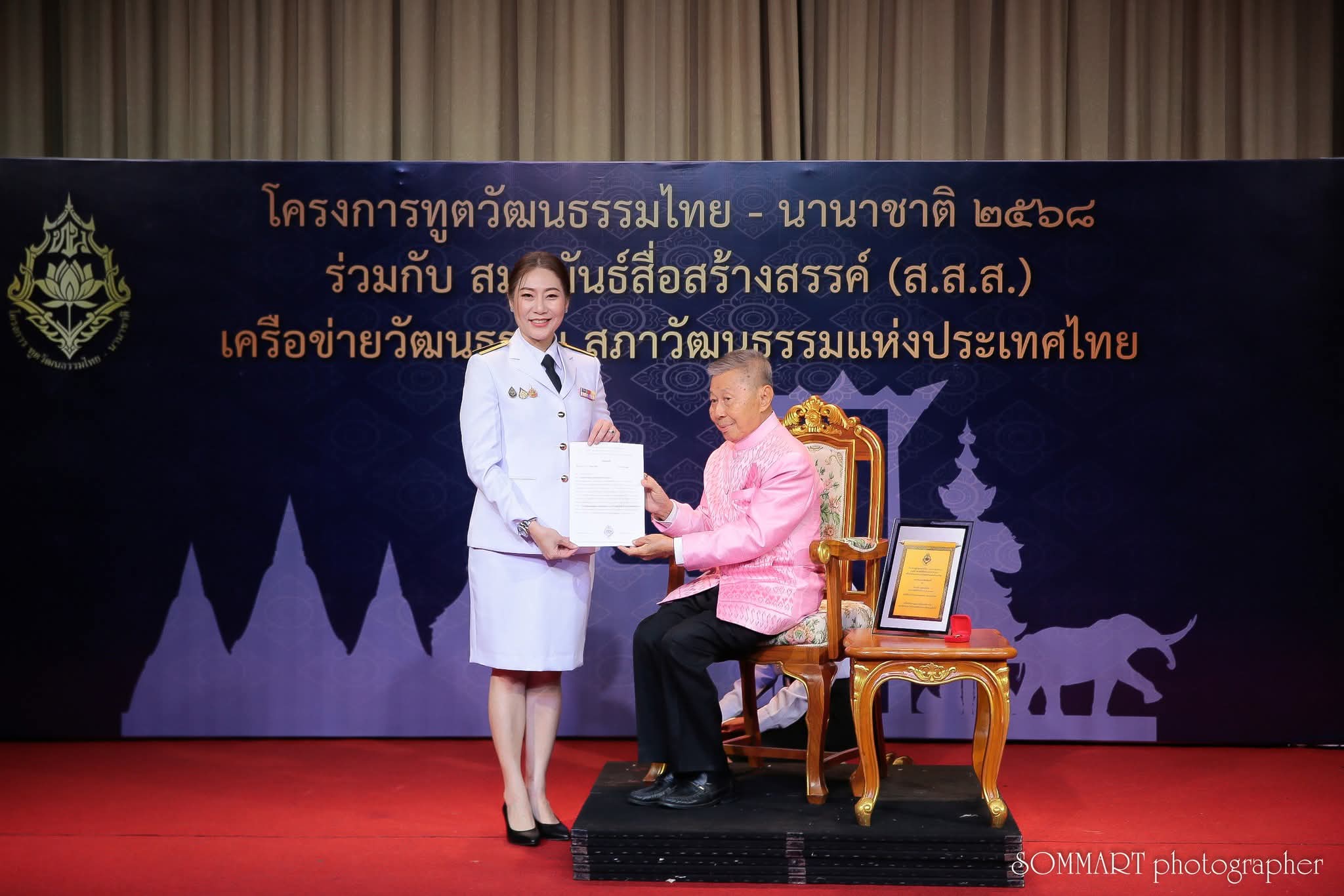 ร่วมกับสมาพันธ์สื่อสร้างสรรค์ (ส.ส.ส.) เครือข่ายวัฒนธรรม สภาวัฒนธรรมแห่งประเทศไทยเปิดตัวทูตวัฒนธรรมไทย-นานาชาติ ในงานพิธีการมอบใบแต่งตั้งอย่างเป็นทางการ