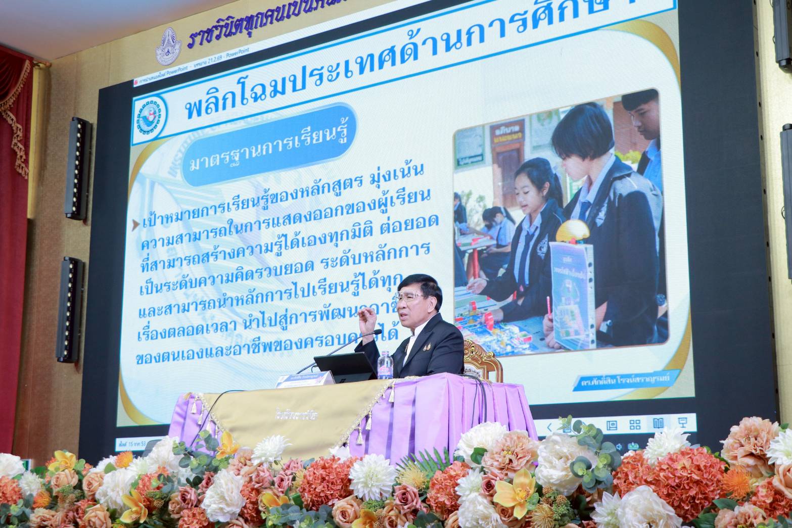 “หัวใจสำคัญของการศึกษาในวันนี้คือการเปลี่ยนจากการท่องจำ เป็น การสร้างนวัตกรรม ผ่านกระบวนการ Active Learning มาเป็นเครื่องมือให้ครูออกแบบการเรียนรู้ที่กระตุ้นให้ผู้เรียนรู้จักการรวบรวมข้อมูล วิเคราะห์ ประยุกต์ใช้จนสามารถสร้างสรรค์สิ่งใหม่ได้ด้วยตนเอง ซึ่งการอบรมครั้งนี้ถือเป็นก้าวสำคัญที่ผู้บริหารและครูจะร่วมกันปฏิรูปหลักสูตรให้ทันสมัยและตอบโจทย์อนาคตได้”เลขาธิการ กพฐ.กล่าว