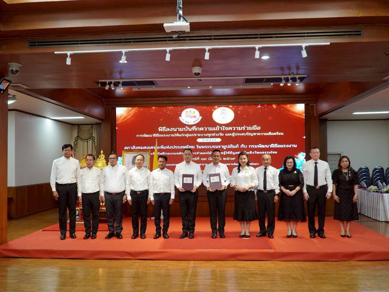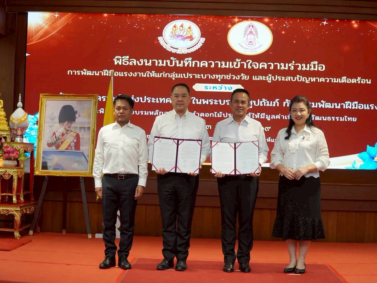 สภาสังคมสงเคราะห์แห่งประเทศไทย ในพระบรมราชูปถัมภ์ ร่วมกับกรมพัฒนาฝีมือแรงงาน กระทรวงแรงงาน จัดพิธีลงนามบันทึกความเข้าใจความร่วมมือ (MOU) เพื่อพัฒนาฝีมือแรงงานให้แก่กลุ่มเปราะบาง