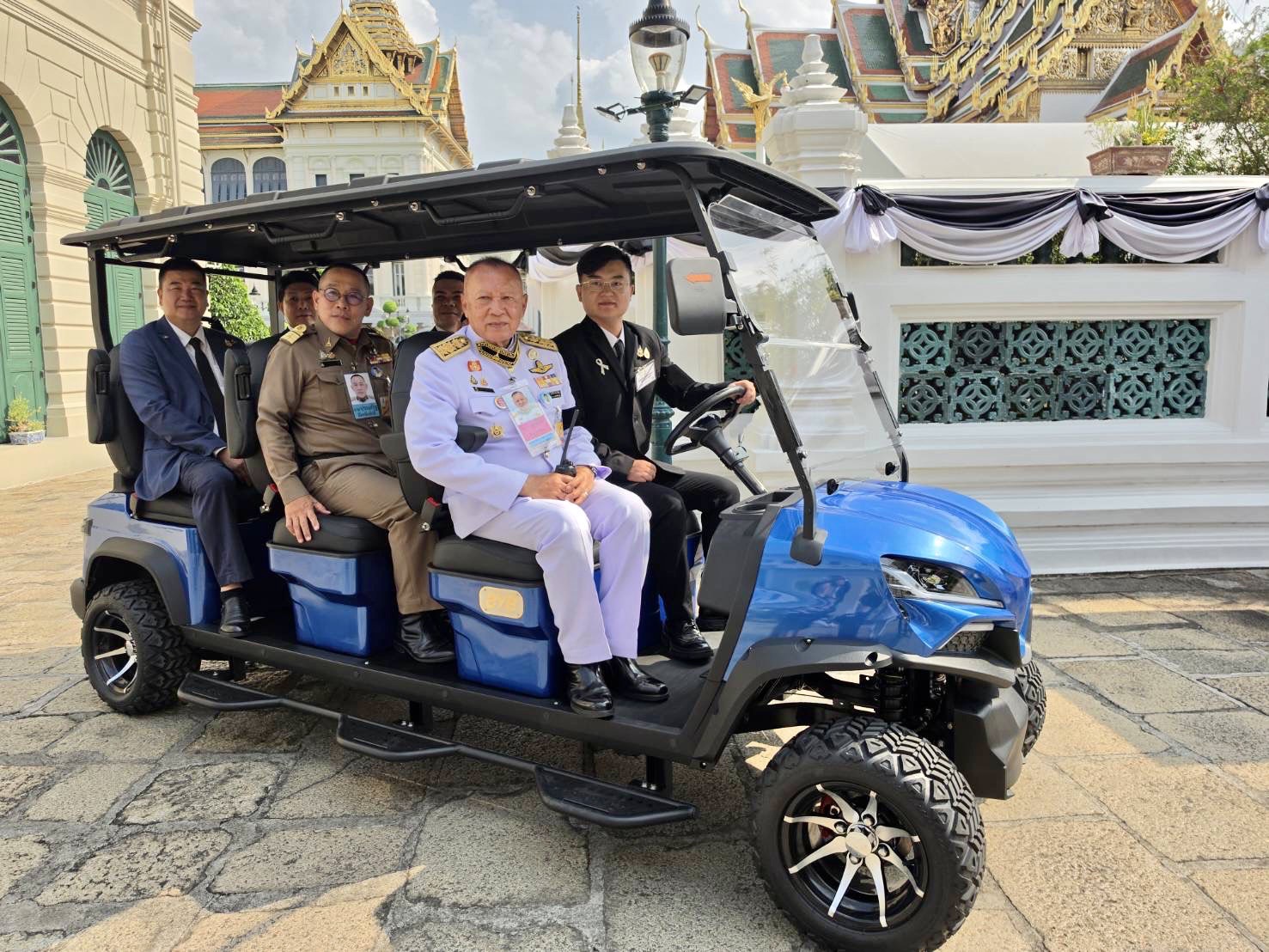 นายธนัท เชี่ยวชาญอักษร ประธานกรรมการ บริษัท ธนัทเฮิร์บ พาณิชย์ จำกัด ร่วมกับ บริษัท บีวายบี อินเตอร์เนชั่นแนล จำกัด พร้อมคณะ จำนวน 11คน มอบรถกอล์ฟไฟฟ้า 6 ที่นั่ง