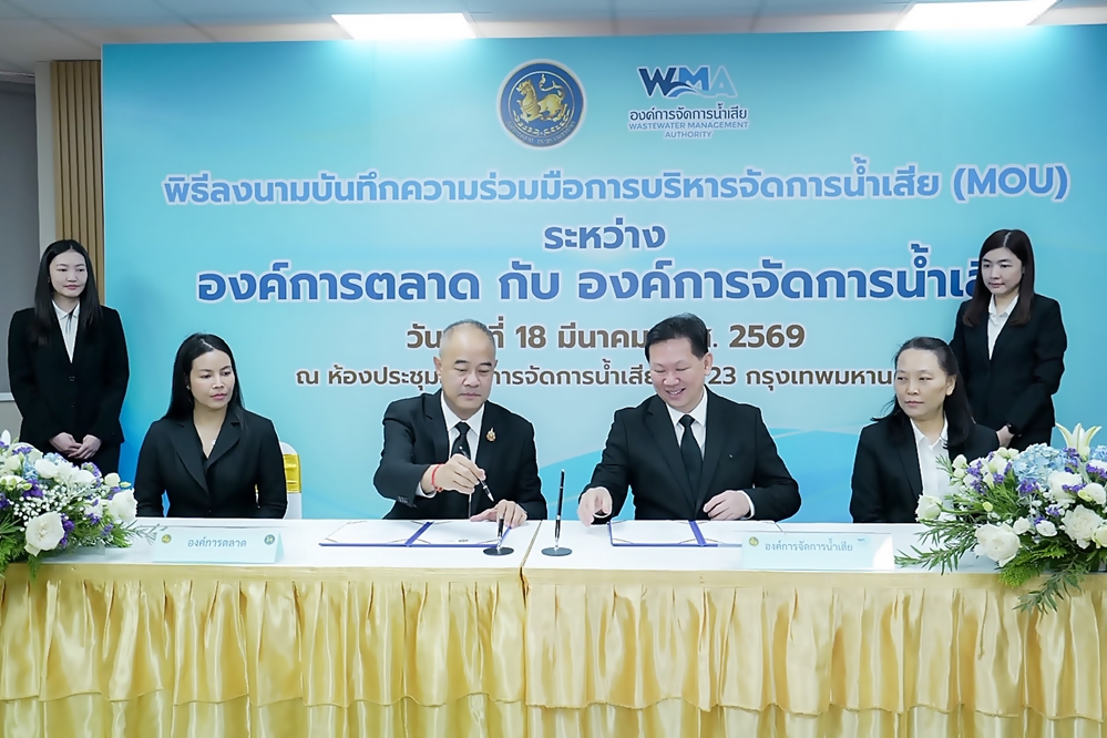 เมื่อวันพุธที่ 18 มีนาคม 2569 องค์การจัดการน้ำเสีย (อจน.) และ องค์การตลาด (อต.) สองรัฐวิสาหกิจสังกัดกระทรวงมหาดไทย ร่วมลงนามบันทึกความร่วมมือ (MOU) ครั้งสำคัญ เดินหน้า บูรณาการเทคโนโลยีและองค์ความรู้ เพื่อยกระดับระบบบำบัดน้ำเสียในตลาดสาธารณะทั่วประเทศ มุ่งเป้าสร้าง “ตลาดต้นแบบ” ที่เป็นมิตรต่อสิ่งแวดล้อม พร้อมขับเคลื่อนยุทธศาสตร์การจัดการเมืองยั่งยืน